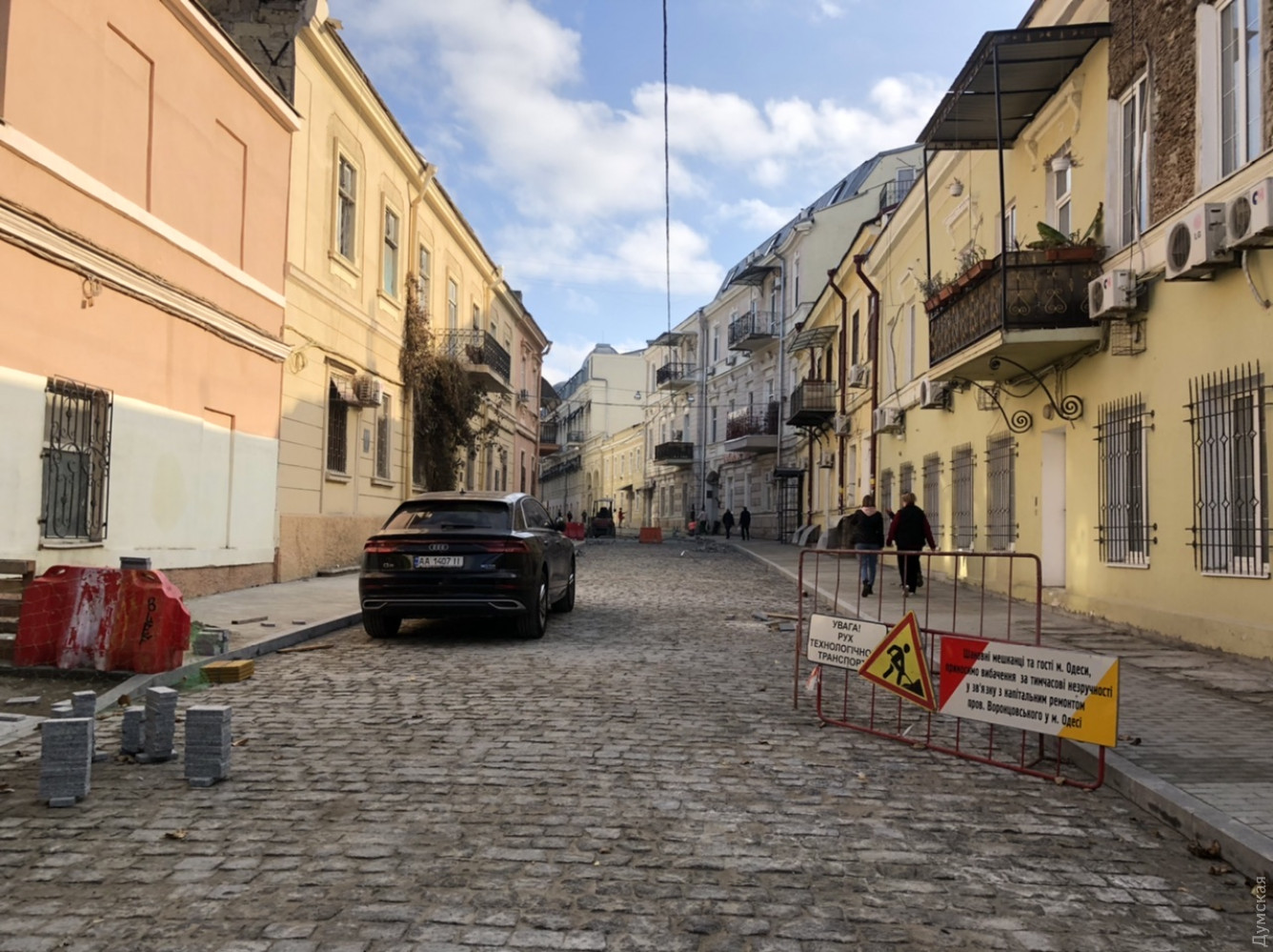 По Воронцовскому переулку уже можно гулять — половину дороги застелили брусчаткойРемонтники частично открыли Воронцовский переулок. Здесь уже застелили брусчаткой половину дороги. Смотрится она, нужно сказать, неплохо, хоть и не является аутентичной. Работы в Воронцовском переулке, напомним, начались в конце июня и должны завершиться в декабре 2020-го. На ремонт мэрия тратит 22 миллиона 406 тысяч. Выигравшая тендер компания «Пик-Строй» должна была поменять покрытие проезжей части и тротуара и положить вместо асфальта брусчатку. СМЕРТЬ РОСІЙСЬКИМ ОКУПАНТАМ! Помітили помилку? Виділяйте слова з помилкою та натискайте control-enter |