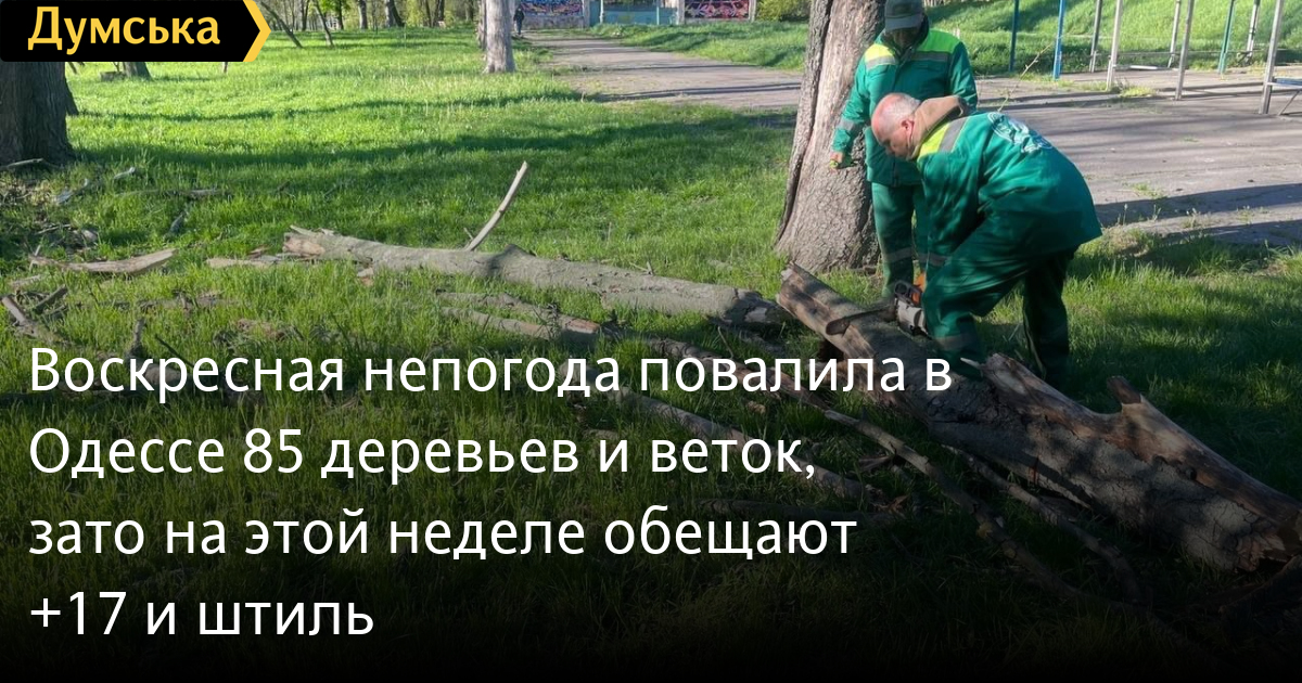 Воскресная непогода повалила в Одессе 85 деревьев и веток, зато на этой неделе обещают +17 и штильШтормовой ветер, которой бушевал вчера в Одессе, повалил 85 деревьев и крупных веток. Как сообщили ЖКС города, со состоянию на утро 27 апреля последствия непогоды ликвидировали по 53 адресам, на остальных локациях работы продолжаются. В них принимают участие сотрудники КП «Горзелентрест», «Городские дороги», ЖКСов, «Одесгорсвет» и другие. Тем временем синоптики обещают, что на текущей неделе в городе будет спокойно. В течение следующий пяти дней ожидается переменная облачность и без существенных осадков. Ветер умеренный, преимущественно северной и только 28 апреля юго-западный. Температура ночью составит 1-6° тепла, местами в воздухе и на поверхности почвы заморозки 0-2°, а днем воздух прогреется до 12-17°. СМЕРТЬ РОССИЙСКИМ ОККУПАНТАМ! Заметили ошибку? Выделяйте слова с ошибкой и нажимайте control-enter |