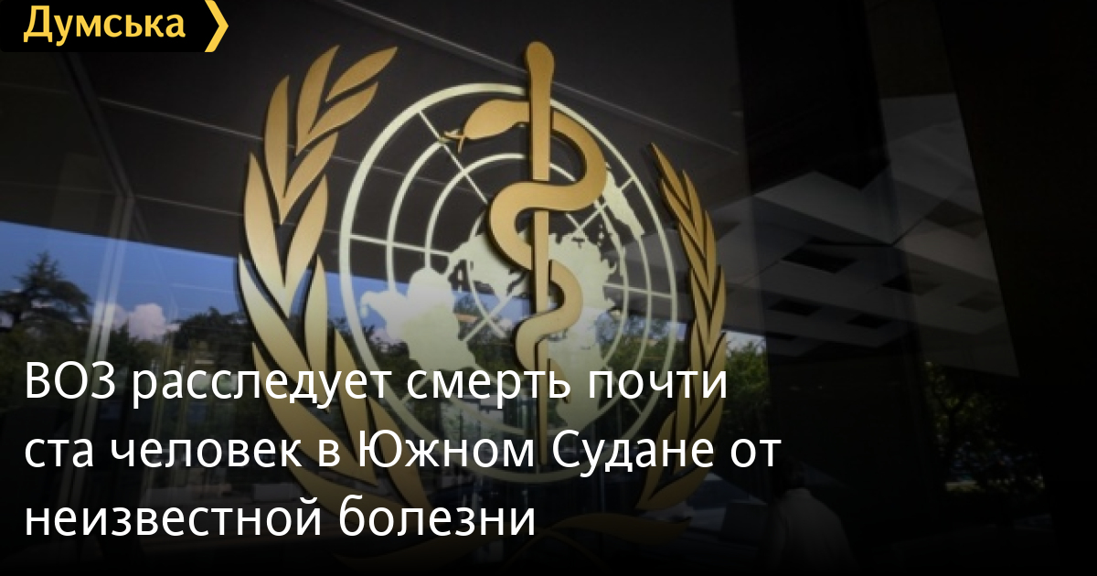 ВОЗ расследует смерть почти ста человек в Южном Судане от неизвестной болезниНа востоке Южного Судана 89 человек скончались за последние несколько недель от неизвестной болезни. В связи с этим Всемирная организация здравоохранения направила в регион целевую группу для проведения расследования. Эпицентром заболевания стал административный округ Фангак в штате Джонглий, который больше всего пострадал от недавнего крупного наводнения, сообщает ВВС. Местные власти заявили, что образцы, отобранные для исследования, показали, что причиной гибели людей является не холера. «Мы решили отправить группу быстрого реагирования, чтобы оценить и расследовать возможные риски. Также члены группы смогут собрать образцы у больных людей», — отметила представитель ВОЗ Шейла Байя. СМЕРТЬ РОССИЙСКИМ ОККУПАНТАМ! Заметили ошибку? Выделяйте слова с ошибкой и нажимайте control-enter |