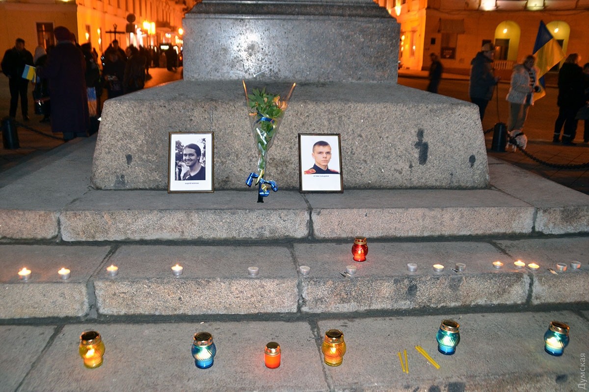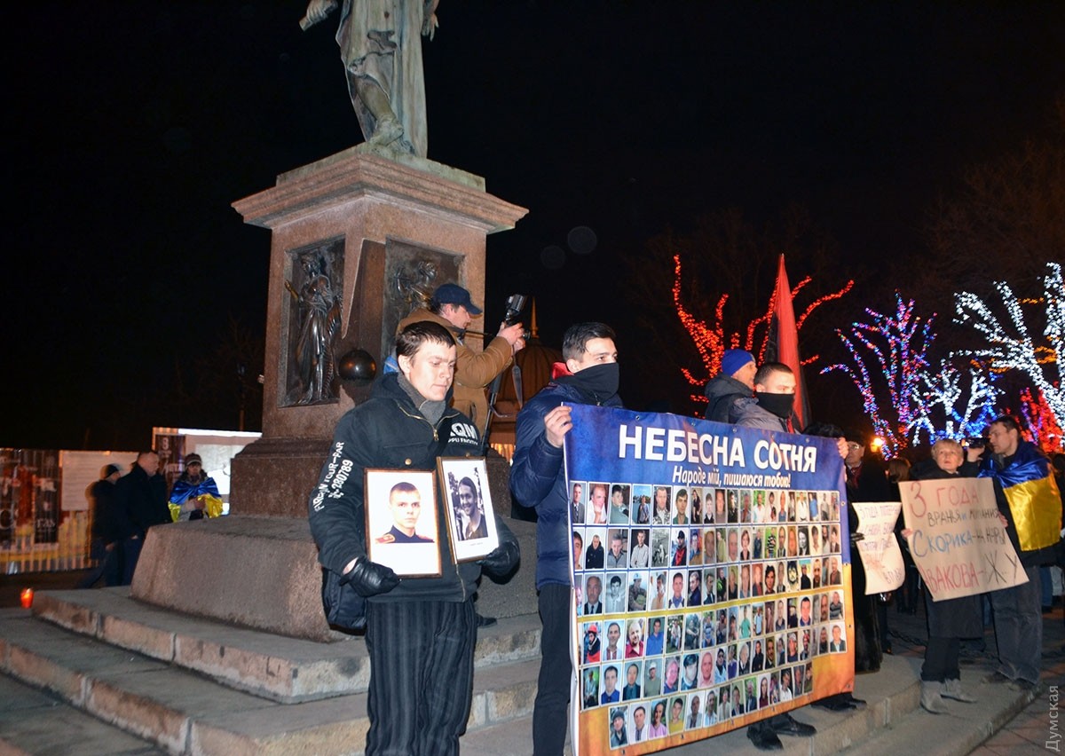 Сегодня возле памятника Дюку около трех сотен активистов Евромайдана собрались на вече, чтобы почтить память героев Небесной сотни.