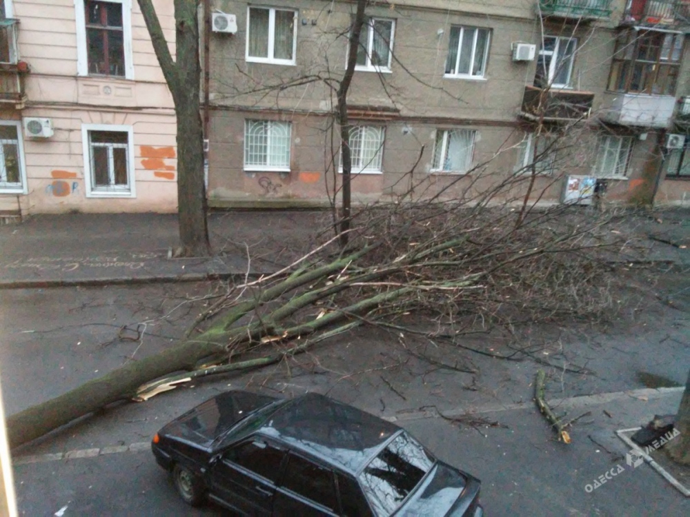 Минувшей ночью на улице Княжеской, 34 упало дерево. Обрушившаяся акация перегородила проезжую часть и чудом не повредила припаркованные рядом автомобили.