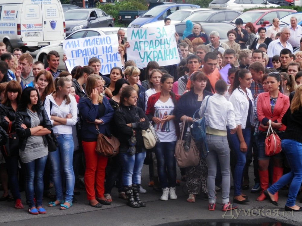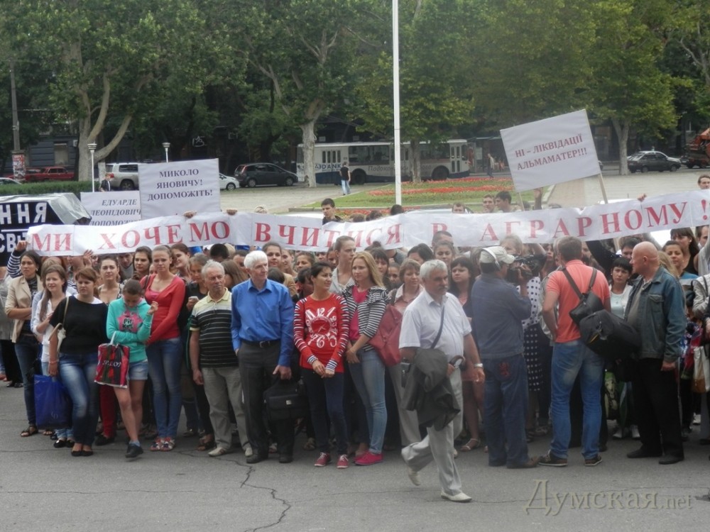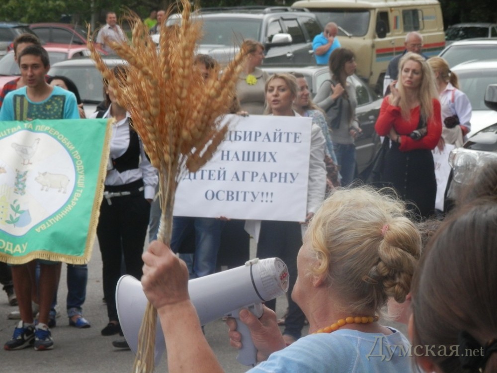 Студенты аграрного университета пикетировали обладминистрацию с собаками, лошадьми и коровойСтуденты и преподаватели одесского аграрного университета вышли на массовую акцию протеста под стены облгосадминистрации. Митингующиеа выступали против объединения их вуза в с пищевой академией. Несмотря на пасмурную погоду, поддержать свой альма-матер пришли более двухсот бывших и нынешних студентов. Активисты развернули транспаранты с символикой университета и пели гимн Украины. «Мы очень просим поддержки властей, ведь иначе – нас просто переселят в здание пищевой академии, а наши земли и здания уйдут в чужие руки. Пострадает качество обучения, ведь в академии нет ни лабораторий, ни специальных кабинетов, ни оборудования», — сетует одна из активисток митинга, глава студенческого самоуправления ветеринарного факультета университета Олеся Мател. Сотрудники университета в свою очередь опасаются возможных увольнений. «Как может аграрная страна закупать продукты и мясо заграницей? Специальности нашего вуза более чем востребованы, но президента это не волнует», — заявила преподаватель Светлана Косенко. Для наглядности к админзданию привели непосредственных клиентов ветеринарных услуг – несколько собак и двух лошадей. Участники митинга рассказали, что изначально взяли с собой даже корову, которая проживает на территории университета, но решили увести ее раньше. Лошадки же остались до конца акции. «Это мои животные – Идеал и Бэлла, живут в прекрасных условиях за городом. Я сама несколько лет назад закончила университет, и сегодня выступаю против решения правительства», — говорит выпускница университета Ольга. В свою очередь в облгосадминистрации сообщили, что еще в минувший четверг губернатор Одесской области Эдуард Матвийчук встретился с инициативной группой студентов аграрного университета. Последние сетовали, что не знают теперь, каким будет их диплом, опасаются увольнений преподавателей и ущемления интересов учащихся. Руководитель области посоветовал молодым людям определиться, чьи именно интересы они защищают (свои или преподавателей) и подробно изучить решение Кабмина, которое может быть для них выгодным. Напомним, 26 июня Кабинет министров принял решение перевести ОГАУ из ведения министерства аграрной политики и продовольствия в подчинение министерству образования и науки, а также присоединить его к академии пищевых технологий, создав на базе двух вузов единое учебное заведение. Руководство и студенты аграрного университета выступили против такого решения. Ректорат ОНАПТ от подобный заявлений воздерживается. СМЕРТЬ РОССИЙСКИМ ОККУПАНТАМ! Заметили ошибку? Выделяйте слова с ошибкой и нажимайте control-enter |