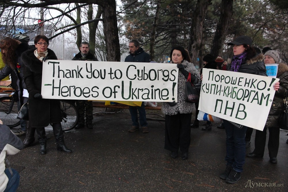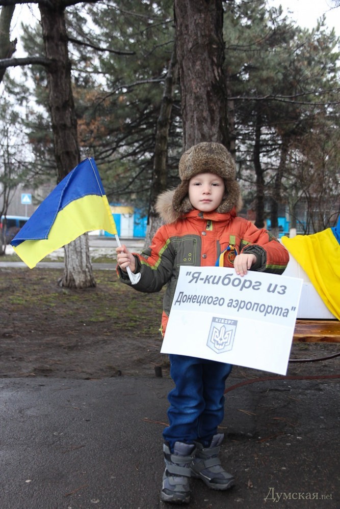 У одесского аэропорта прошла акция в поддержку «киборгов» и в память жертв обстрела Мариуполя