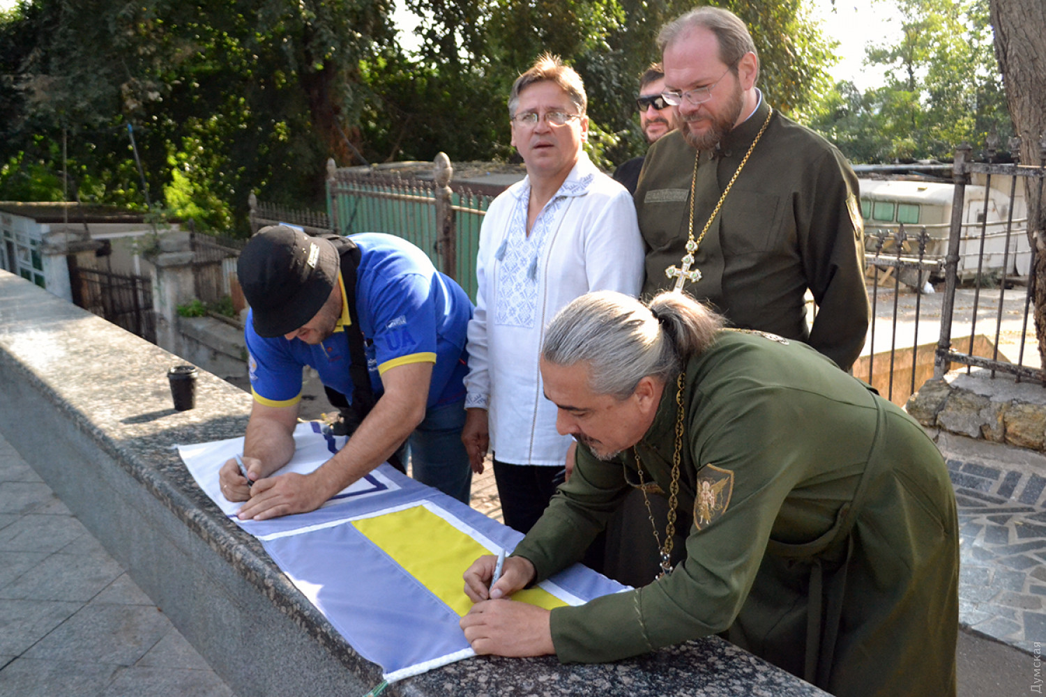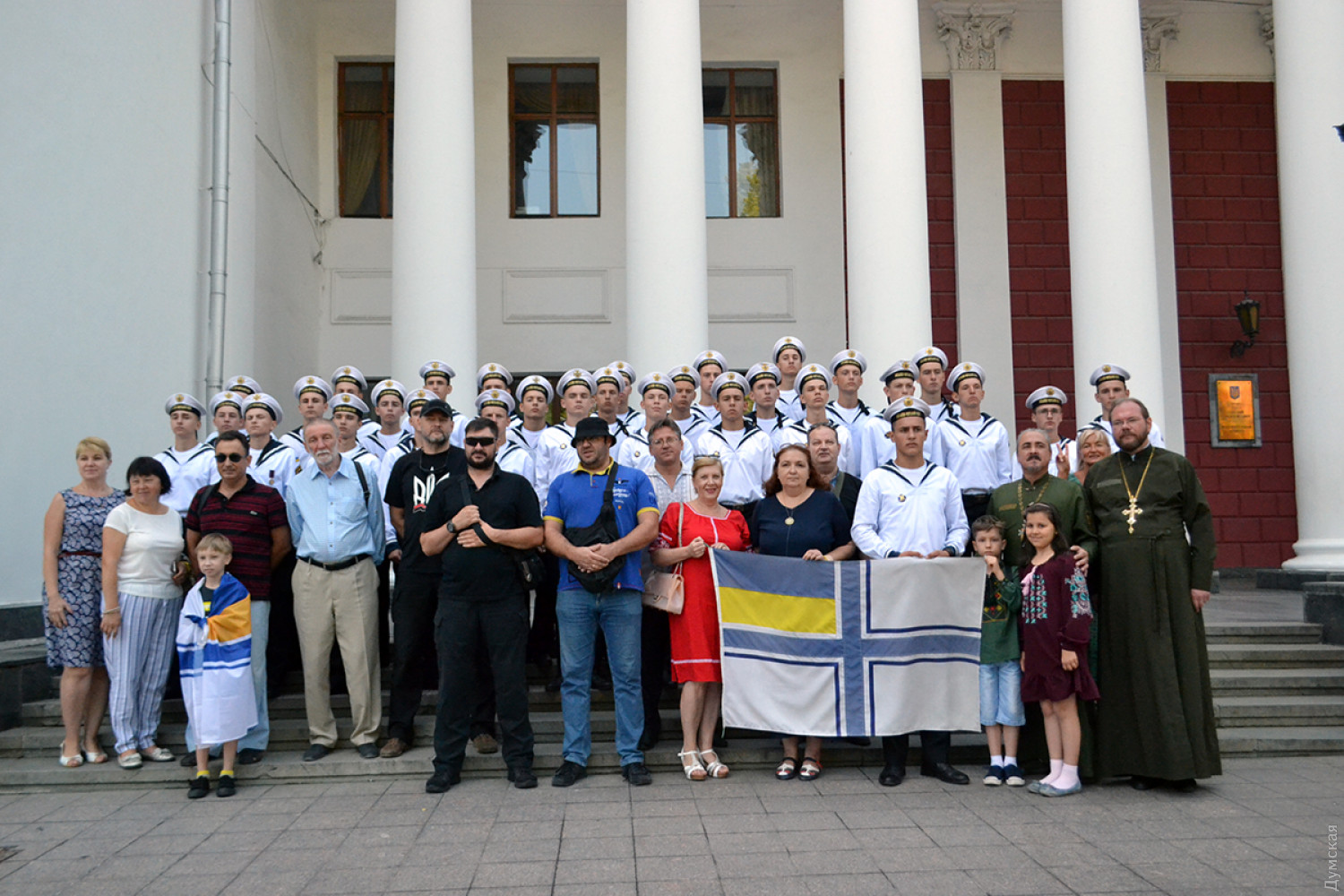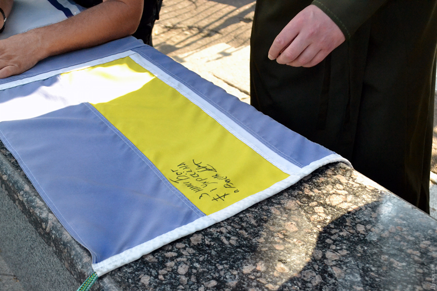 Возле Одесской мэрии сняли флаг ВМСУ — его передадут вернувшимся из плена морякамСегодня волонтеры торжественно сняли флаг ВМСУ ВСУ, который подняли на флагштоке возле мэрии после пленения украинских моряков в Керченском проливе. По словам волонтера ВМСУ Елены Сивак, флаг был поднят в поддержку украинских моряков 3-го декабря 2018 года. «Мы обещали, что этот флаг будет висеть здесь, пока парни не вернуться домой, и сегодня мы его снимаем, оставим свои пожелания морякам и как только они будут в Одессе, мы его им передадим, — пояснила волонтер. — Дальше флаг передадут в музей ВМС, где будут собраны флаги со всех городов, где их поднимали». Елена отметила, что передавать флаг будут ученики Военно-морского лицея. «Так как поднимали флаг младшие представители Военно-морских сил – лицеисты — они же его и передадут своим старшим побратимам», — заверила Сивак. Напомним, что вернувшиеся из российского плена моряки прибыли в Одессу сегодня. Фото, видео — Андрей Колисниченко СМЕРТЬ РОСІЙСЬКИМ ОКУПАНТАМ! Помітили помилку? Виділяйте слова з помилкою та натискайте control-enter |