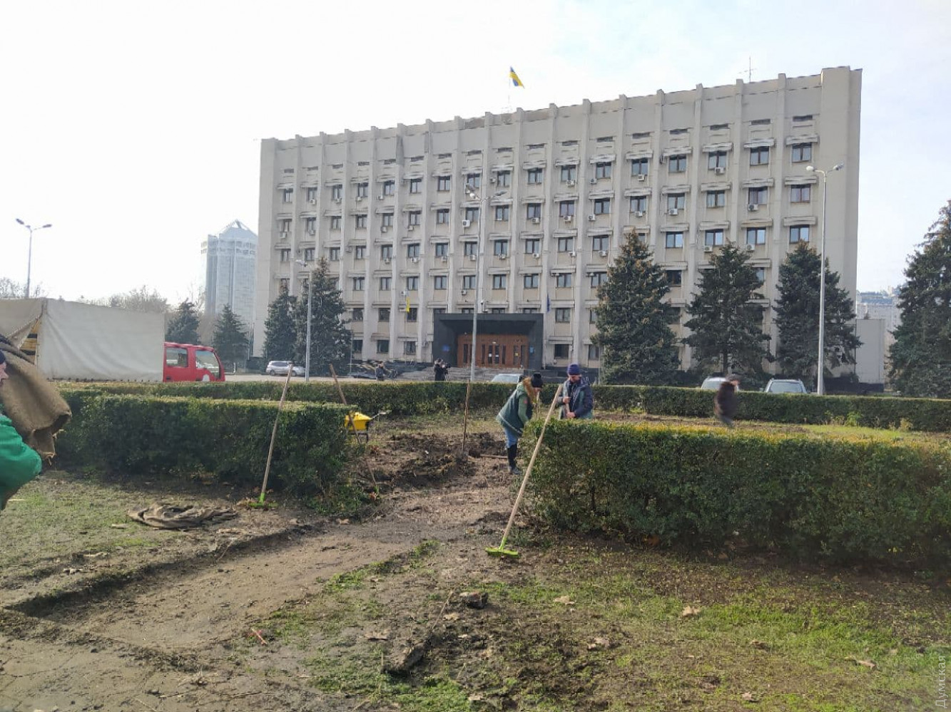 Возле Одесской обладминистрации втихаря снесли хатынку для экспресс-бракосочетаний, построенную при Саакашвили
