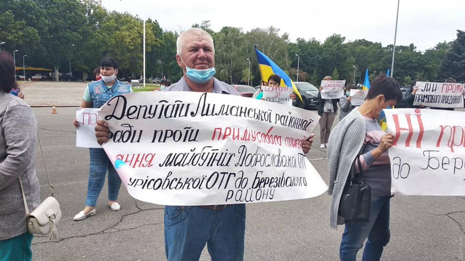 Возле Одесской облгосадминистрации митинговали жители Лиманского района: они не хотят присоединения к Березовке