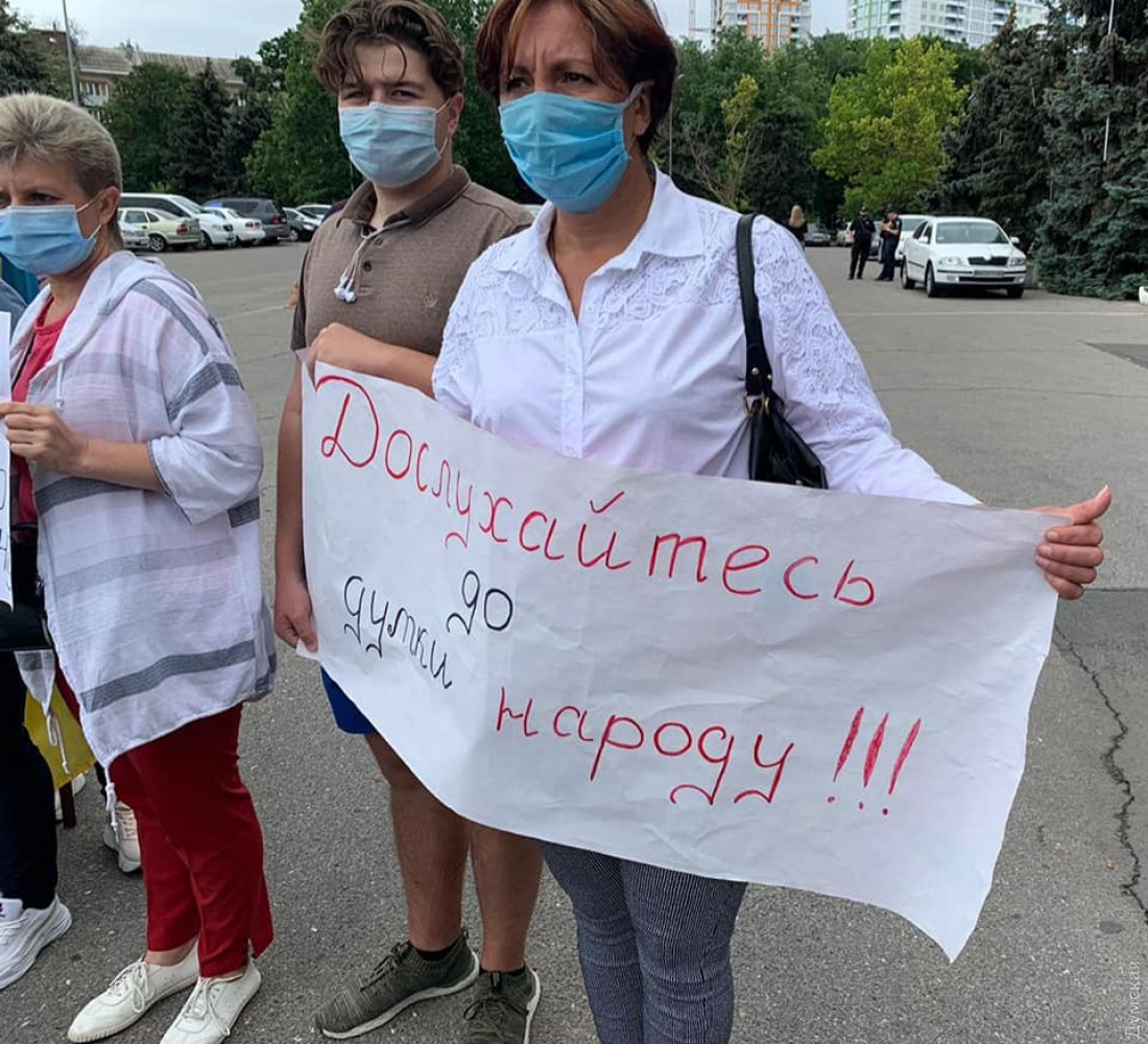Акция протеста против присоединения части Лиманского района к Березовскому прошла сегодня перед зданием Одесской облгосадминистрации.