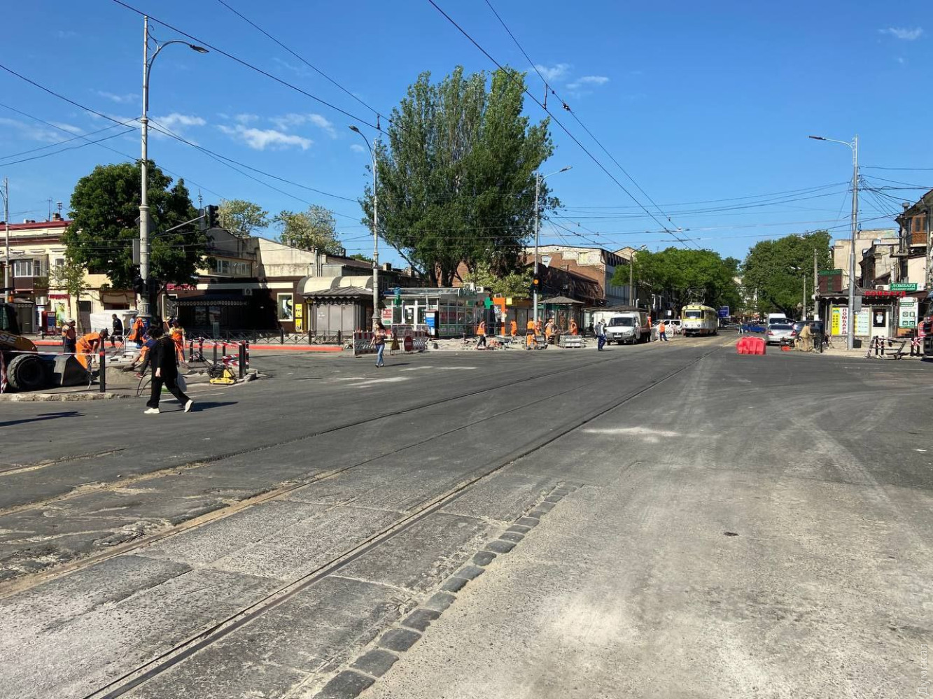 В Одесском горсовете сообщили, что сегодня начали обкатку нового участка трамвайных рельсов, который установили на перекрестке.