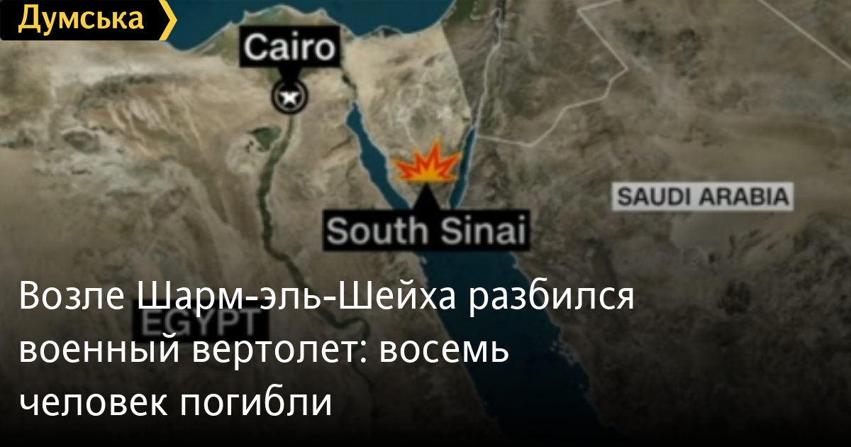 Недалеко от египетского курортного города Шарм-эль-Шейх потерпел крушение военный вертолет. В результате трагедии погибли восемь миротворцев. Об этом сообщает CNN со ссылкой на Вооруженные силы коалиции. Среди погибших — шестеро американцев, один гражданин Чехии и один — Франции. Отмечается, что одному человеку удалось выжить в аварии, это американский гражданин. Согласно предварительным данным, крушение произошло в результате несчастного случая, но точную причину катастрофы выяснит расследование. Миротворческие силы на Синайском полуострове наблюдают за выполнением мирного соглашения, достигнутого между Египтом и Израилем в 1978 году. СМЕРТЬ РОССИЙСКИМ ОККУПАНТАМ! Заметили ошибку? Выделяйте слова с ошибкой и нажимайте control-enter |