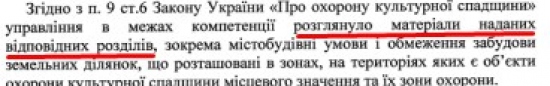 Но форменный цирк начинается, если присмотреться к рекомендациям совета, которые перекочевали в «согласование» профильного управления ОГА. Начнем с того, что консультативный совет рекомендовал не просто согласовать проект, а при обязательном условии, что разработчики нарушат Генеральный план (в части историко-архитектурного опорного плана) и поправят Приказ министерства культуры: