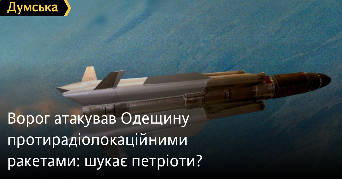 Ворог атакував Одещину протирадіолокаційними ракетами: шукає «петріоти»?Дві протирадіолокаційні ракети Х-31П випустили в ніч на 22 серпня російські нацисти по Одеській області. Про це повідомило повітряне командування «Південь». Крім того, ворог атакував Миколаївщину балістичною ракетою «Іскандер-М». Військові не уточнюють, які були наслідки цих ударів. «Протирадіолокаційні ракети призначені для ураження джерел радіовипромінювання, — пояснює військовий оглядач «Думської» Віктор Босняк. Як правило, їх застосовують проти радарів, зокрема ППО, але вони можуть наводитися й на інші цілі, скажімо, станції радіоелектронної боротьби (РЕБ), потужні радіостанції. В Одеську область ці ракети прилітають нечасто, але таке трапляється. Очевидно, їхня мета — системи протиповітряної оборони, такі як «Петріот», IRIS-T, SAMP-T і вітчизняні С-300». СМЕРТЬ РОСІЙСЬКИМ ОКУПАНТАМ! Помітили помилку? Виділяйте слова з помилкою та натискайте control-enter Новини по цій темі: 1 січня: Наслідки нічного удару: ворог пошкодив причали, техніку та обладнання в двох портах Одещини 1 січня: Нічний удар по Одещині: пошкоджено енергетичну інфраструктуру та житлові будинки (фото, відео) 31 грудня 2025: Новорічний наліт: Одеса під ударом російських шахедів 25 грудня 2025: Ворог вночі атакував Одеську область: одна людина загинула, двоє отримали поранення (фото) |