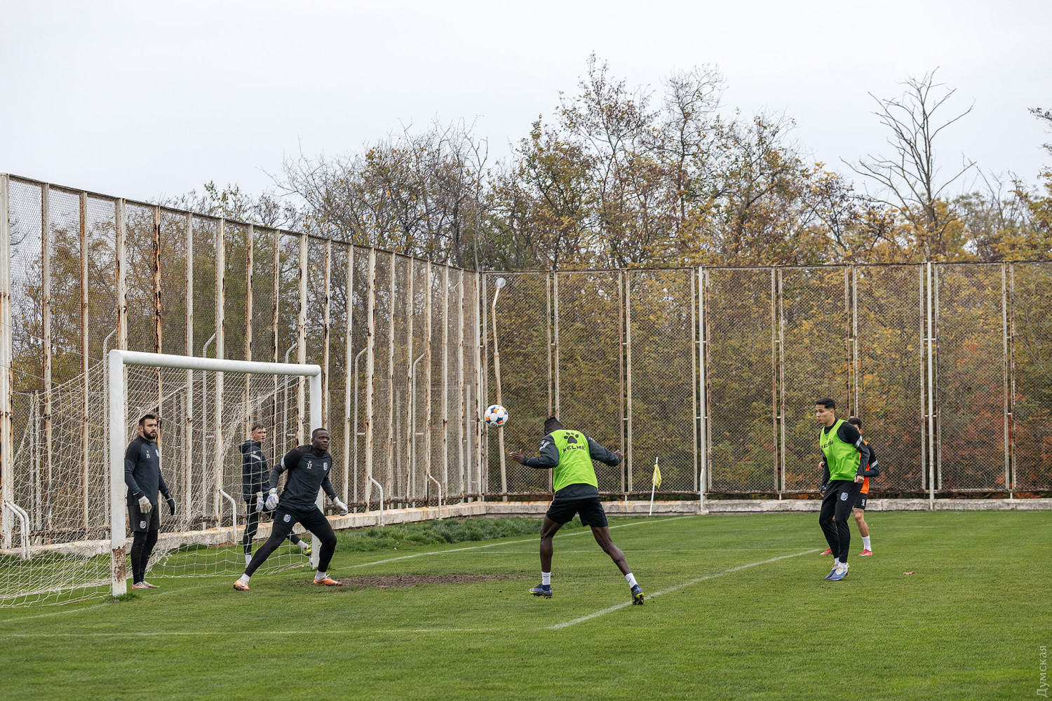 Прекрасний старт «Чорноморця» в Першій лізі ґрунтовно підбадьорив одеських уболівальників, розчарованих вильотом улюбленого клубу з Прем'єр-ліги. Впевнена гра підопічних Олександра Кучера дозволяє з надією дивитися в майбутнє. Ми вирішили відвідати команду і вирушили на тренувальну базу в Совіньон, щоб дізнатися, чим живуть «моряки». Звичайний будній вівторок. Тишу туманного осіннього ранку розрізає майже нестямний крик «яяяяя». Незважаючи на максимальну стислість висловленого, очевидно, що кричить не українець. Порушником спокою виявився нігерійський воротар «Чорноморця» Чіжіоке Кінгслі Аніагбосо. Так він позначив своїм захисникам, що бере під контроль м'яч і допомоги не потребує. Чіжіоке всього 21 рік, але сьогодні він основний воротар одеської команди. Тренування, на яке ми потрапили, присвячене тактичним побудовам, відпрацьовуються так звані «заготовки» — прийоми, що застосовуються в тій чи іншій ситуації. Нас просять не знімати відео, щоб конкуренти не дізналися, чим їх збирається дивувати «Чорноморець». Атмосфера на полі робоча, але трохи напружена — позначається післясмак домашньої поразки від «Буковини», а це, між іншим, головний суперник за перше місце, від якого «моряки» відстають вже на сім очок. «ПОТРІБНО БУЛО ПОВЕРНУТИ ХЛОПЦЯМ ПАЛАЮЧІ ОЧІ» За діями гравців уважно стежить головний тренер Олександр Кучер і активно вказує на ті чи інші моменти, які йому не подобаються. Для нього, як для молодого тренера, нинішній сезон є надзвичайно важливим. Ексзірка «Шахтаря» прийняв «Чорноморець» у березні 2025 року. Перед ним поставили завдання врятувати клуб, що тонув, і залишити його в елітному дивізіоні, однак це не вдалося. «Коли я прийшов у «Чорноморець», то застав команду в складному моральному та фізичному стані. Потрібно було насамперед повернути хлопцям емоції, палаючі очі. Чи могли ми з тим складом залишитися в Прем'єр-лізі? Могли. Я завжди кажу, що не буває безвихідних ситуацій, завжди можна досягти результату. Головне — бажання і віра в себе. Мабуть, цього нам тоді не вистачило», — каже Олександр Кучер. Проте, в фахівця повірили і довірили йому право формувати склад і готувати команду до нового сезону. Тепер це вже точно його «Чорноморець», а на порядку денному — завдання з зірочкою: повернення до Прем'єр-ліги. Одесити блискуче стартували, довгий час лідирували, але після низки невдалих ігор опустилися на другу позицію. Проте, видно, що спортсмени тренуються в гарному настрої, немає нервозності і недомовленості. «Ми і покричати можемо, і пожартувати, а коли треба — і в діалог вступити. У нас немає такого, що все робиться за вказівкою тренера. До людей потрібен індивідуальний підхід — на когось можна накричати, і це його підбадьорить, а інший, навпаки, закриється. Ми намагаємося не зациклюватися тільки на футболі, ходимо разом в кіно, спілкуємося. Це згуртовує колектив – дуже важливо емоційно розвантажуватися», – розмірковує головний тренер. «НІКОЛИ В ЖИТТІ НЕ ДУМАВ, ЩО БУДУ ГРАТИ В ПЕРШІЙ ЛІЗІ» Однак не всі футболісти відпрацьовують тактичні схеми, є ті, хто через стан здоров'я на поле не виходять. Серед них зірка українського футболу, ексгравець збірної України та київського «Динамо» Євген Хачеріді, який приєднався до «Чорноморця» минулого літа. Для нього нинішній сезон теж особливий, оскільки це спроба повернути