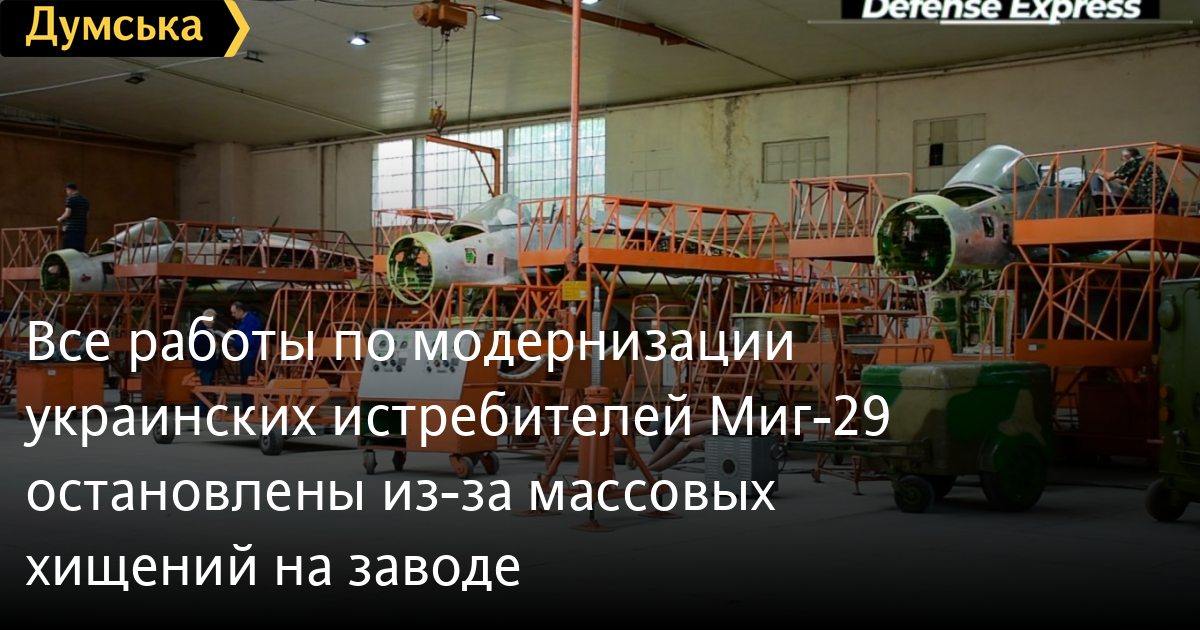 Все работы по модернизации украинских истребителей Миг-29 остановлены из-за массовых хищений на заводеМодернизация украинских легких истребителей Миг-29 остановлена на неопределенное время из-за хищений. Хищения состоялись еще в конце февраля этого года, но об этом стало известно только сейчас, сообщает издание Defense Express. Представитель львовского авиационного предприятия, где проводят работы по модернизации этих самолетов, на условиях анонимности сообщил, что на заводе происходят массовые кражи: «Для работ по модернизации мы получили один самолет из военной части. Самолет прибыл к нам на завод, и уже на стадии разборки здесь его разворовали. Украдено более 20 блоков». Собеседник издания также сообщил, что аналогичные блоки были похищены и с других истребителей Миг-29, находящихся на территории комендатуры рядом с предприятием. Сейчас правоохранители занялись расследованием о хищении узлов и агрегатов самолета МиГ-29 (бортовой номер 26, выпущенный 30 декабря 1988 года), который поступил на «Львовский государственный авиационный ремонтный завод», входящий в состав Госконцерна «Укроборонпром», для ремонта и модернизации в версию МиГ-29МУ1. «Вероятнее всего блоки были украдены с целью перепродажи. Впоследствии часть плат из этих блоков была подброшена на поляну недалеко от предприятия. Завод инициировал обращение в СБУ, было заведено дело. Им сейчас занимается Львовское территориальное управление ГБР», — сообщил специалист. Фото Сергея Смоленцева и Defense Express. СМЕРТЬ РОССИЙСКИМ ОККУПАНТАМ! Заметили ошибку? Выделяйте слова с ошибкой и нажимайте control-enter |