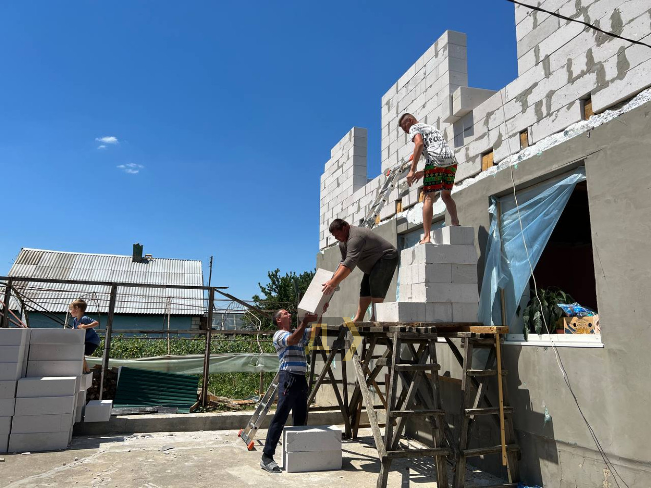 Всем миром: в Одесской области соседи помогают многодетной семье восстанавливать дом, пострадавший в результате ракетного обстрелаЖители села Маяки Одесской области помогают многодетной семье Степовых восстановить жилье, пострадавшее во время ракетного обстрела 27 июня. Корреспондент «Думской» побывала в населенном пункте. Марина Степовая с мужем и пятью детьми живут рядом с домом, во двор которого прилетела российская ракета. В момент удара вся семья отдыхала на втором этаже. Взрывной волной в их доме выбило окна и разрушило крышу. Женщину и детей придавило обломками, из-под завалов их доставали соседи. «Мы проснулись от того, что у мужа кровь начала хлестать. И он закричал: «Марина, вставай! — вспоминает многодетная мать. — А я не могу встать, потому что меня гипсокартоном накрыло. У нас на втором этаже спальня была. Стены и потолок упали на нас и среднего сына. Соседи сразу же прибежали, потому что знали, что у нас пятеро детей и надо их спасать». Больше всего пострадали трехлетние близнецы Вова и Коля – их поранило осколками стекла. «Они спали под окном, стекла полетели прямо в них. Осколки попали в головы. Но врачи оказали помощь, сейчас дети чувствуют себя хорошо. От госпитализации мы отказались», — говорит Марина. Во дворе Степовых кипит работа. Соседи, родственники и старшие сыновья, 17-летний Кирилл, 14-летний Никита и пятилетний Ваня, помогают восстанавливать дом. Мужчины носят кирпичи и заново возводят стены, женщины убирают осколки. «Человек десять пришло, разобрали сначала то, что обвалилось, теперь вот собираем обратно, — поясняет отец семейства Сергей Степовой. — Каждый день приходят все новые друзья. А еще кумовья, братья, вот потихоньку начинаем восстанавливать. Все своими силами, потому что очень дорого. Приехала бригада, подсчитала стоимость ремонта, я такую сумму не потяну. Решили материалы купить, хоть они и дорогие, а делать уже будем сами». Чтобы закупить стройматериалы, продали машину. Уже наполовину отстроили стены второго этажа, но накануне был сильный ливень, и вода залила стройплощадку. Пришлось разбирать деревянные перекрытия, срывать ламинат и просушивать дом. Но семья Степовых не сдается. Говорят, несмотря на все, восстановят дом и снова заживут счастливой жизнью. «Мы не хотим никуда уезжать. Ну как мы все оставим? У нас теплицы, мы посадили огурцы, редиску. Мы выедем, и за что будем жить за границей, кому мы там вообще нужны? Еще и с пятью детьми», — говорит Марина. Автор – Анастасия Сухая СМЕРТЬ РОСІЙСЬКИМ ОКУПАНТАМ! Помітили помилку? Виділяйте слова з помилкою та натискайте control-enter |