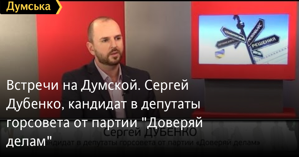 Встречи на Думской. Сергей Дубенко, кандидат в депутаты горсовета от партии «Доверяй делам»Встречи на Думской. Сергей Дубенко, кандидат в депутаты горсовета от партии «Доверяй делам« СМЕРТЬ РОССИЙСКИМ ОККУПАНТАМ! Заметили ошибку? Выделяйте слова с ошибкой и нажимайте control-enter Думская ТВ. Встречи на Думской: