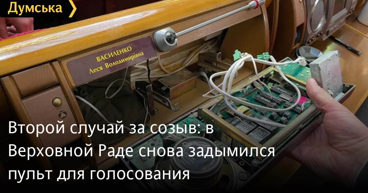 ЧП случилось сегодня в сессионной зале Верховной Рады. Задымился пульт для голосования у нардепа из фракции «Голос» Леси Василенко. Спикер парламента Дмитрий Разумков объявил перерыв на 15 минут, чтобы проветрить зал заседаний. Коллеги Василенко отмечают, что депутатский пульт задымился на 300 правке к законопроекту №2194 о передаче государственных земель громадам, к которому ОПЗЖ и «Батьківщина» подали 3000 поправок. Отметим, в прошлом году в зале заседаний загорелся пульт для голосования у народного депутата от «Слуги народа» Максима Ткаченко. СМЕРТЬ РОССИЙСКИМ ОККУПАНТАМ! Заметили ошибку? Выделяйте слова с ошибкой и нажимайте control-enter