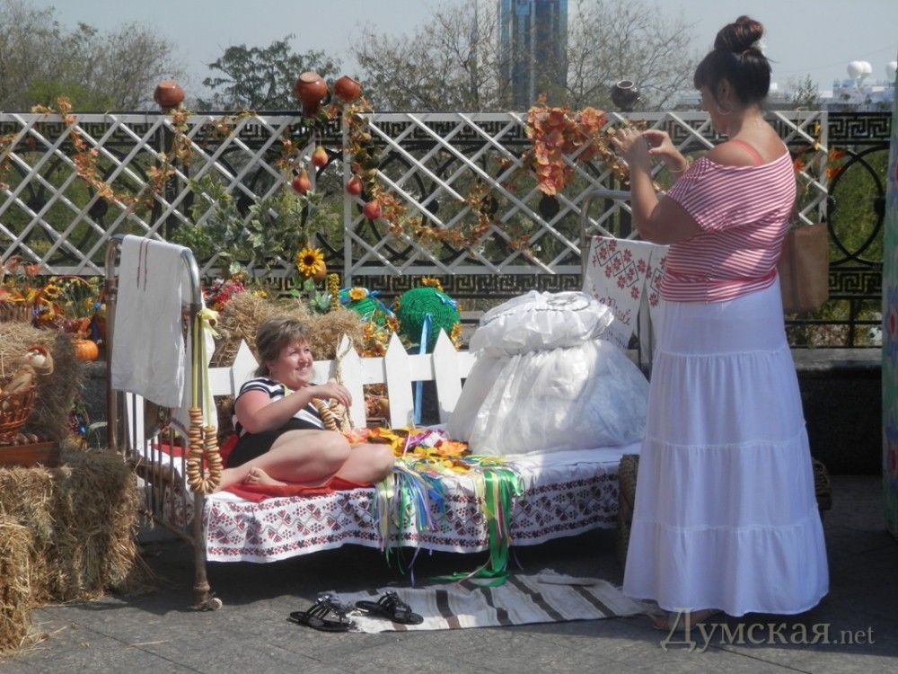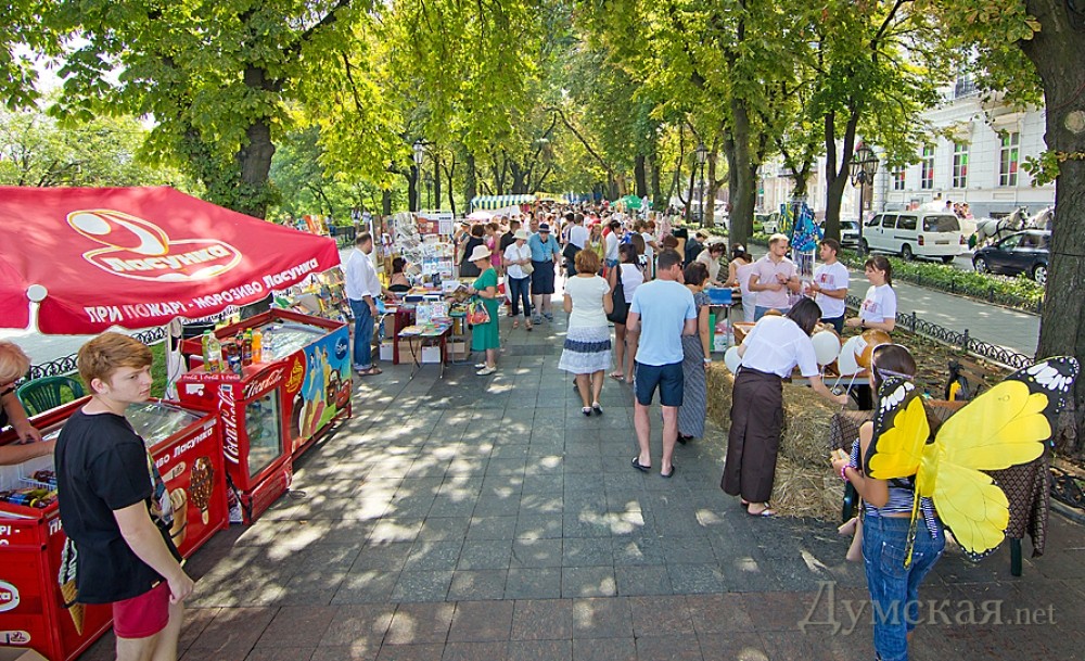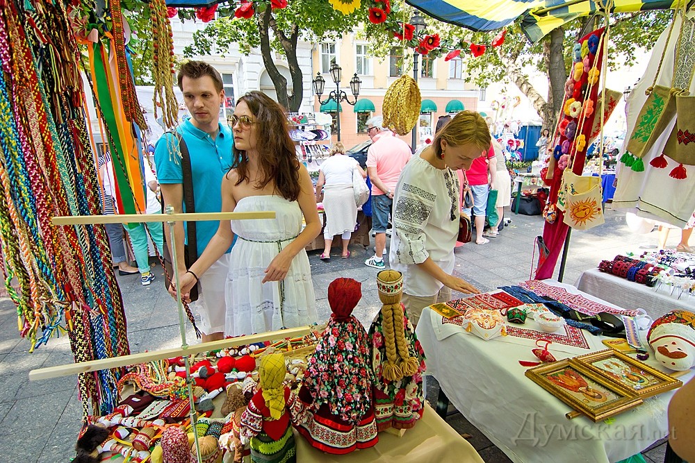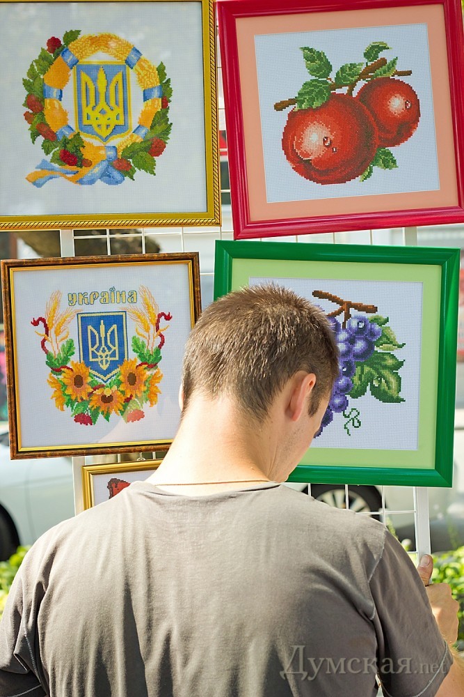 На Приморском бульваре стартовал «вышиванковый фестиваль»: продают матрешки на украинский лад и наци-сувениры c БандеройВ преддверии Дня независимости на Приморском бульваре Одессы открылся пятый тематический «Вышиванковый фестиваль». Организаторы похвастались, что в этом году мероприятие стало самым масштабным на юге Украины – участие в нем приняли более 200 мастеров со всех уголков страны (для сравнения, в прошлом году умельцев было меньше сотни). Как передает ваш корреспондент, концентрация людей на бульваре сегодня зашкаливала, причем не столько за счет одесситов, сколько благодаря пассажирам двух лайнеров, прибывших сегодня в одесский порт. Иностранцы с удовольствием и не торгуясь скупали поделки украинских мастеров и товар с национальной символикой – в особенности матрешки. Последние наши умельцы умудрились расписать на украинский лад. «Вот здесь десять фигур – это украинская семья. Самая маленькая матрешка – это цыпленок», — поделился с нами продавец Олег. Большая часть ярмарки была отведена под «национально ориентированный» ширпотреб – вышиванки, глиняную посуду, рушники, магнитики на холодильники с рябиной и казаками. Нарасхват уходили украинские венки с ленточками и цветами. Цены на них варьировались от 25 до 300 грн за штуку, в зависимости от количества декора. А вот рубашки с ручной вышивкой брали неохотно, уж больно цены на них кусались — самая дешевая блузка продавалась за 400 грн. На фоне однообразного товара выделялись медные украшения ручной работы. Их автор – девушка из Харькова Оксана, которая хоть и окончила школу с трояком по физике, научилась сложнейшему процессу гальваники – под действием электрического тока она покрывает живые листочки частицами меди, превращая их в изысканные украшения. Другой мастер в области бижутерии Елена принесла на ярмарку востребованные среди модниц объемные колье из бисера и стразов – за одно такое авторское украшение девушка просит от 800 до 1500 грн. Был тут и съедобный товар – многочисленные пряники, конфеты и даже лакомства для сыроедов. Аппетитное печенье из меда, орехов и проросшей гречки отдавали по 42 грн за 100 грамм. Продавец, она же создатель кулинарных шедевров Елена говорит, что спрос на вегетарианскую пищу в Одессе растет. Не обошлось и без провокационной продукции. Так, один участник ярмарки привез из Львова целое собрание националистической литературы и магнитики с недвусмысленными текстами вроде «Спасибо тебе Господи, что я не москаль». Сам он, впрочем, был настроен очень миролюбиво, в конфликты не вступал, а книги продавал по «бюджетным» ценам – от 25 до 45 грн. Ярмарка задержится на бульваре до понедельника. Завтра здесь пройдет масса мероприятий и акций в честь Дня независимости – «ланцюг» из 850 участников в вышиванках, детские праздники, мастер-классы народных умельцев, сине-желтый велопробег, конкурс по поеданию вареников на скорость и многое другое. Также в рамках общественного проекта состоится показ коллекции украинских костюмов, разработанных и пошитых слабослышащими воспитанниками одесского технического лицея. Автор Надежда Маркевич, фото Александра Гиманова и автора СМЕРТЬ РОСІЙСЬКИМ ОКУПАНТАМ! Помітили помилку? Виділяйте слова з помилкою та натискайте control-enter |