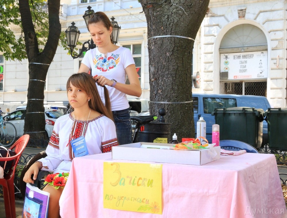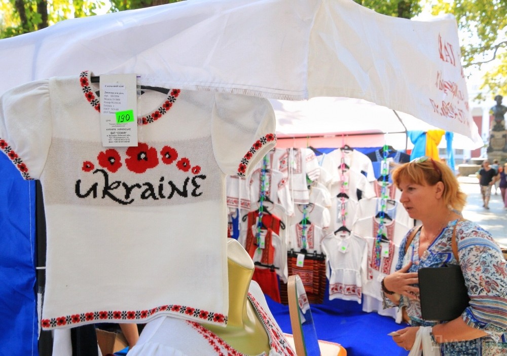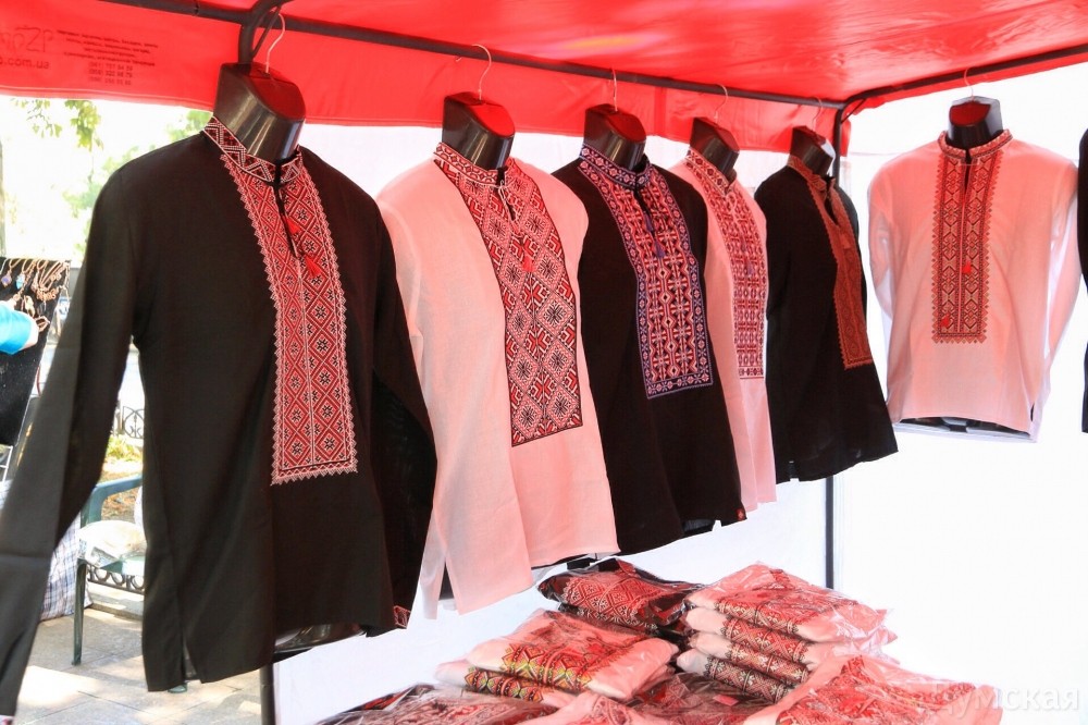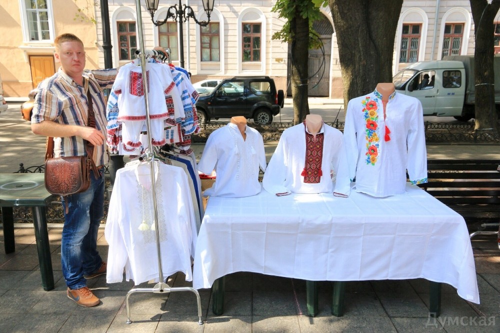 Вышиванковый фестиваль в разгаре. Вдоль главного бульвара Одессы протянулась ярмарка изделий народных умельцев: продают и картины, и украшения, и различные игрушки, сделанные своими руками, и конечно, вышиванки. Детскую рубашечку можно купить за 100-150 гривен, а взрослые вышиванки доходят по цене до 1500 гривен. Здесь же на ярмарке можно и прическу сделать: украинский колосок — конкурент африканских косичек. А рукодельница из Луганска Леонида Ткаченко, которая приехала к нам в связи с событиями на Донбассе, продает на выставке удивительные по красоте писанки, сделанные из куриных и страусиных яиц.