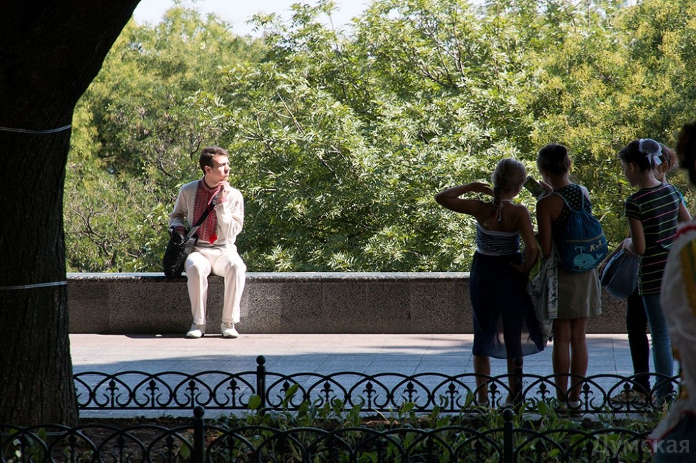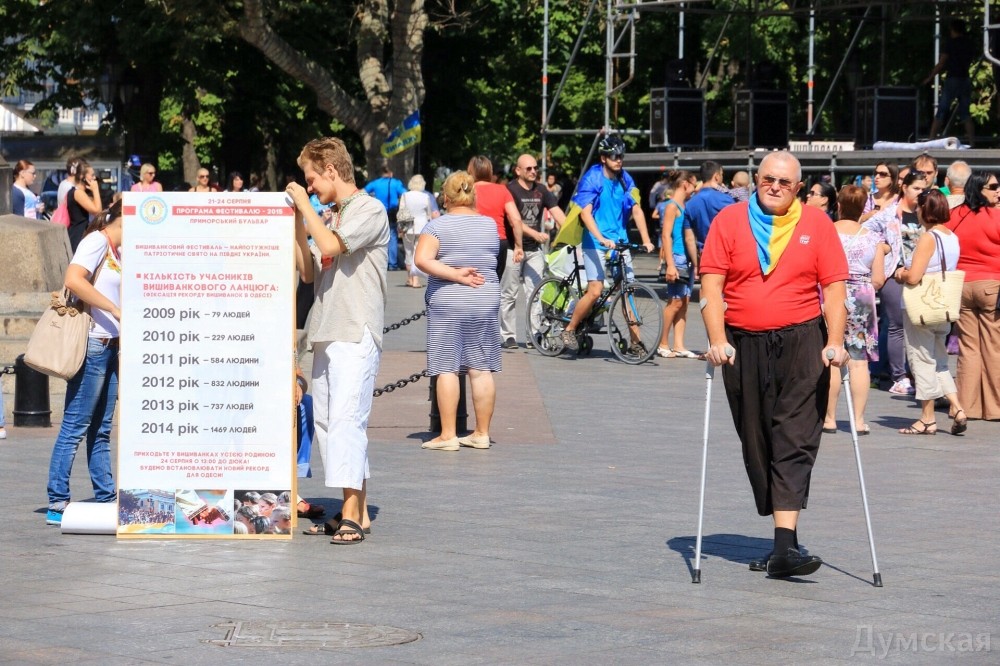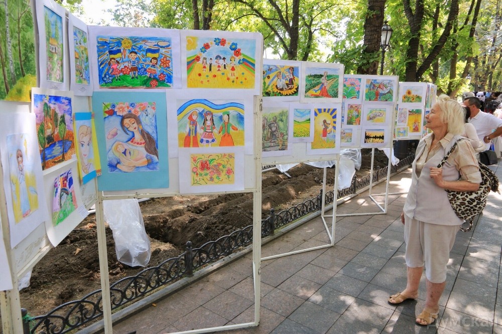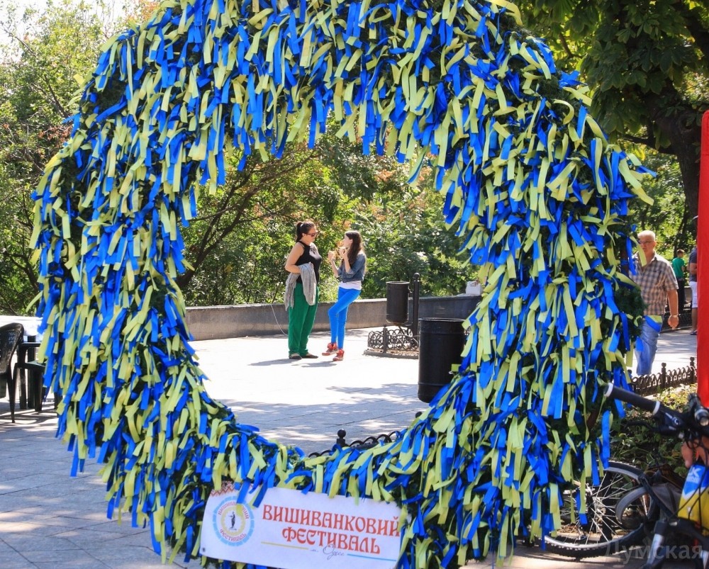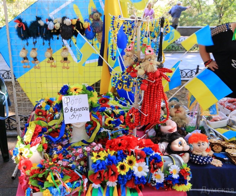 Вышиванковый фестиваль в разгаре. Вдоль главного бульвара Одессы протянулась ярмарка изделий народных умельцев: продают и картины, и украшения, и различные игрушки, сделанные своими руками, и конечно, вышиванки. Детскую рубашечку можно купить за 100-150 гривен, а взрослые вышиванки доходят по цене до 1500 гривен. Здесь же на ярмарке можно и прическу сделать: украинский колосок — конкурент африканских косичек. А рукодельница из Луганска Леонида Ткаченко, которая приехала к нам в связи с событиями на Донбассе, продает на выставке удивительные по красоте писанки, сделанные из куриных и страусиных яиц.