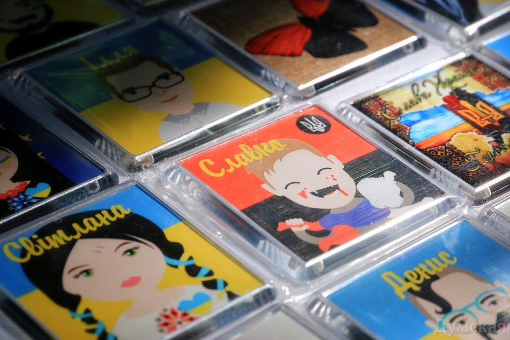 «В Одессе квартиру снимаем, как-то крутимся. Здесь нам очень нравится. Люди приветливые, добрые»,- говорит женщина. Писанки от луганчанки стоят от 50 гривен. Можно также купить на бульваре и патриотические магнитики с именами за 25 гривен. Отметим, Вышиванковый фестиваль и ярмарка продлятся в Одессе до 24 августа. Фото: Александр Гиманов