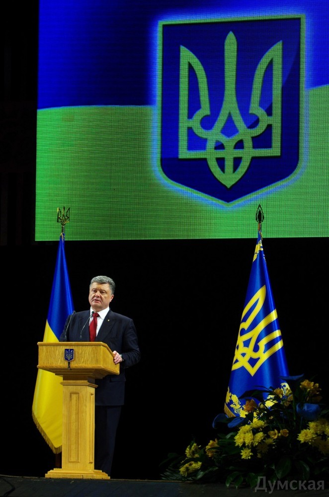 Президент поблагодарил одесситов за их проукраинскую позицию, за вклад в сохранение единства Украины. В ряды украинской армии было мобилизовано более 7000 жителей области, еще более 1500 одесситов добровольно пошли защищать Украину. 56 жителей области и военнослужащих дислоцированных в регионе воинских частей погибли при исполнении воинского долга.