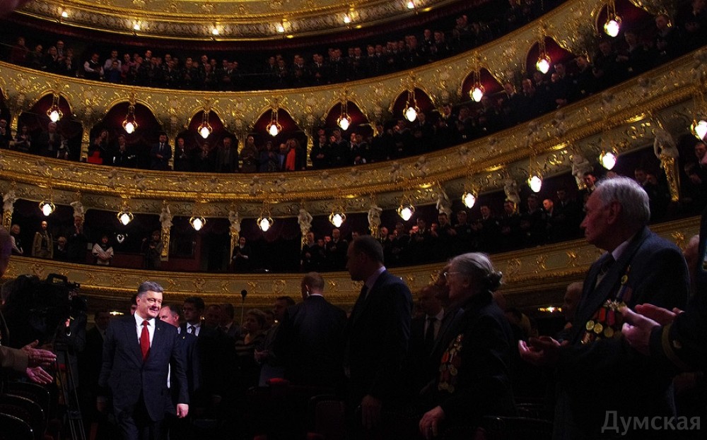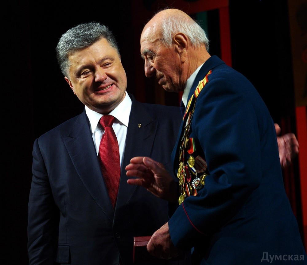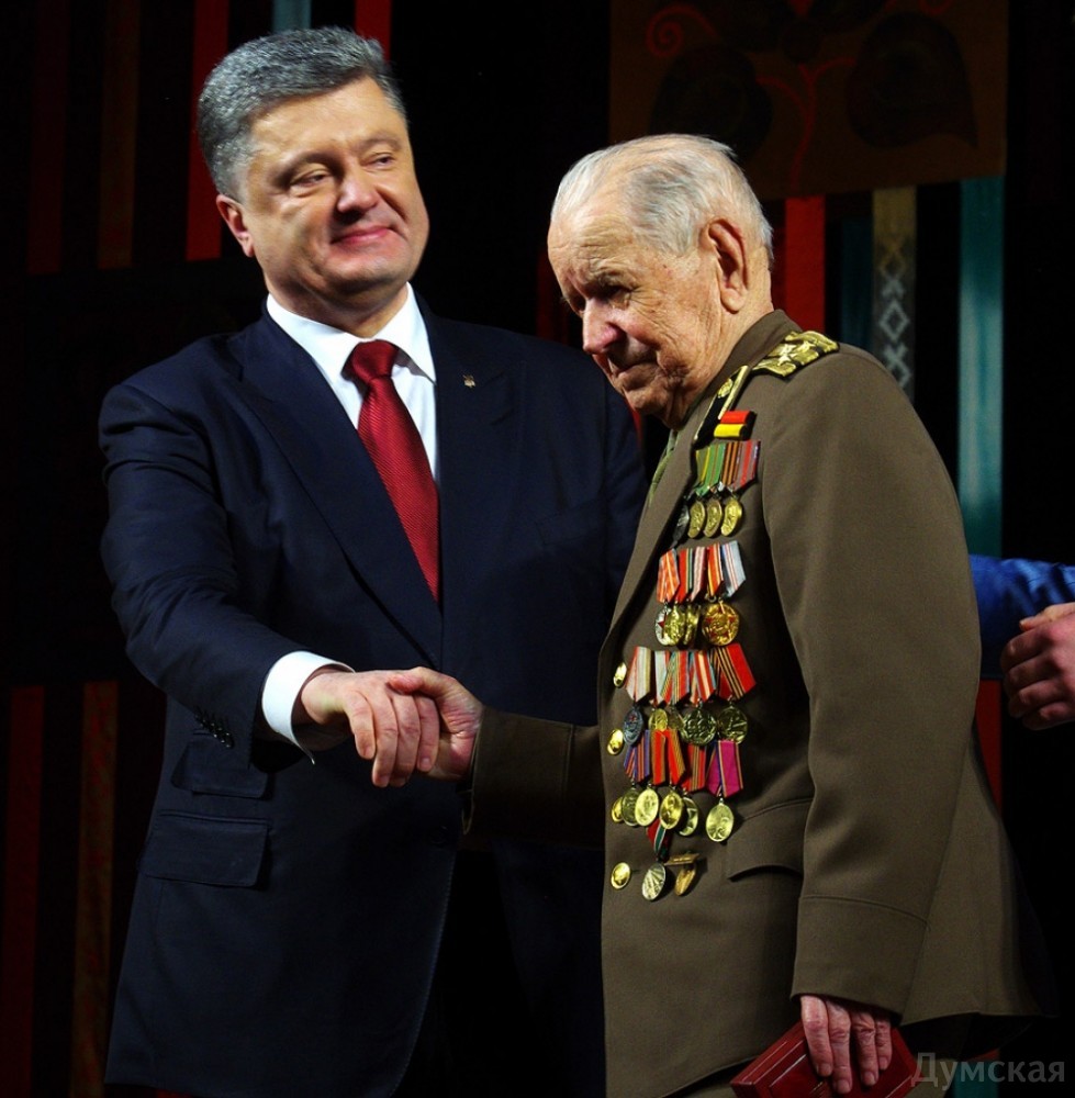 Петр Порошенко назвал оскорбительными и шокирующими заявления руководителей России о том, что войну якобы можно было выиграть и без Украины. «Эти слова — надругательство на памятью погибших воинов и издевательство над чувствами живых ветеранов. Не выиграли бы этой войны без украинцев — тут не о чем спорить! А вот о том, началась бы война, если в Кремле не подписали пакт Молотова-Риббентропа, — можно было бы поспорить», — заявил он. Глава государства особо отметил героизм одесситов, 14 из которых стали Героями Советского Союза.
