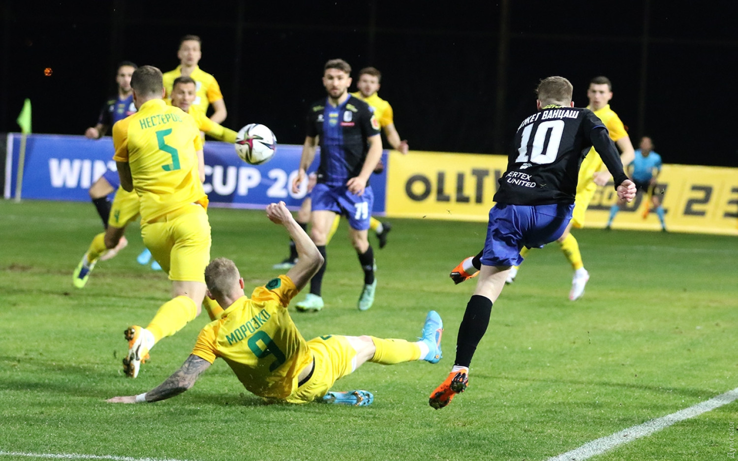 Одесский «Черноморец» уступил житомирскому «Полесью» во второй игре товарищеского турнира Winter Cup 2022. По сравнению с матчем первого тура против харьковского «Металлиста» Роман Григорчук произвел две замены. На правый фланг атаки вместо Дмитрия Юсова вышел Николай Морозюк, а на позиции центрфорварда Назария Русина заменил Мартин Петков. Команды начали без раскачки, и уже на шестой минуте мяч побывал в воротах Евгения Паста. Впрочем, судейская бригада справедливо зафиксировала офсайд. После этого момента инициатива надолго перешла к «морякам». Руди Пожег Ванцаш сместился с левого фланга в центр и нанес обводящий удар по воротам «Полесья». Голкипер оказался на высоте. На 12-й минуте голевой шанс упустил Цонев, который головой не попал в свободный угол. Не реализовал Борислав момент, и когда пытался замкнуть дальнюю штангу — досадное падение вместо удара в касание. На исходе первого получаса забивать мог Гио Цитаишвили — житомирскую команду спасла штанга. А через минуту необъяснимым образом по мячу с метра не попал Мартинович. Правда, на перерыв «Черноморец» мог уйти в качестве проигрывающей стороны, но где-то не повезло Шасталу, где-то мастерство демонстрировал Паст. Во втором тайме наставник одесситов произвел несколько замен, после которых Георгий Цитаишвили переместился с левого фланга защиты на правый фланг атаки. И забил! Ванцаш отдал передачу под левую Гио, далее последовали пару успешных финтов и мощный выстрел в дальний угол — 1:0! После забитого мяча игра немного успокоилась, но черно-синие были ближе к забитому мячу — Ванцаш и Гио упустили свои моменты. Увы, удержать победный счет «Черноморец» не сумел. Опытнейший Гитченко на 88-й минуте замкнул головой навес с левого фланга — 1:1, и подопечные Григорчука снова отправились бить послематчевые пенальти. К сожалению, одесситам не повезло, они уступили 4:5. Получили второе очко в турнирный зачет, но лишились шансов на победу в турнире. Автор — Виталий Хемий, спортивный обозреватель «Думской» СМЕРТЬ РОСІЙСЬКИМ ОКУПАНТАМ! Помітили помилку? Виділяйте слова з помилкою та натискайте control-enter Новини по цій темі: |