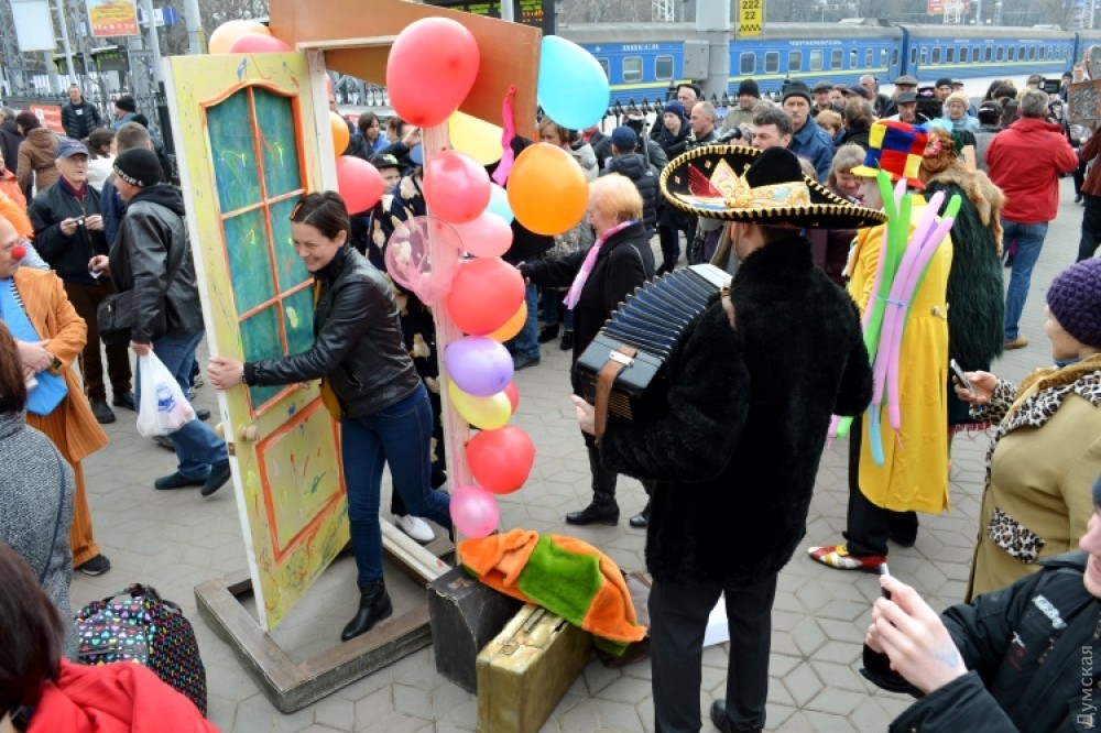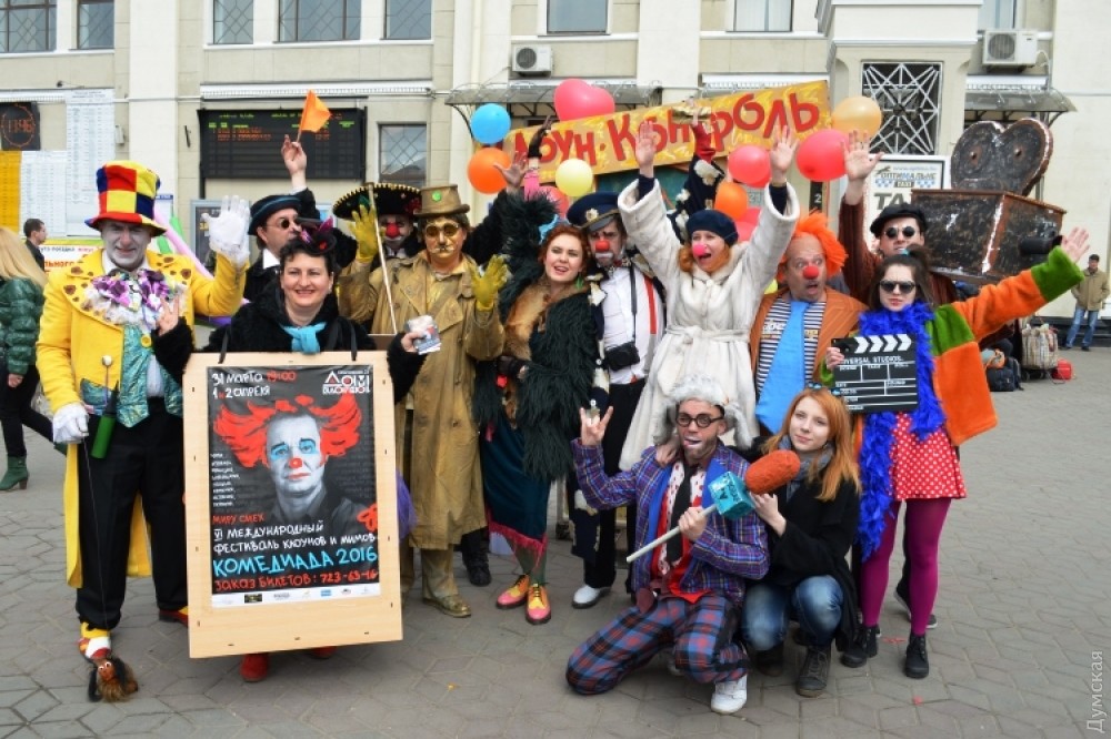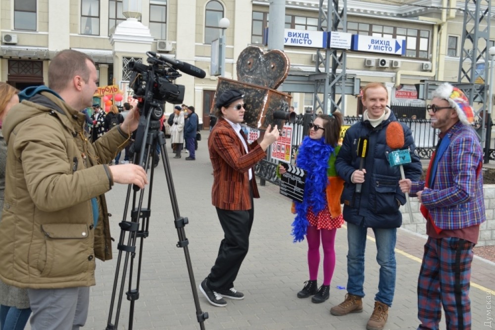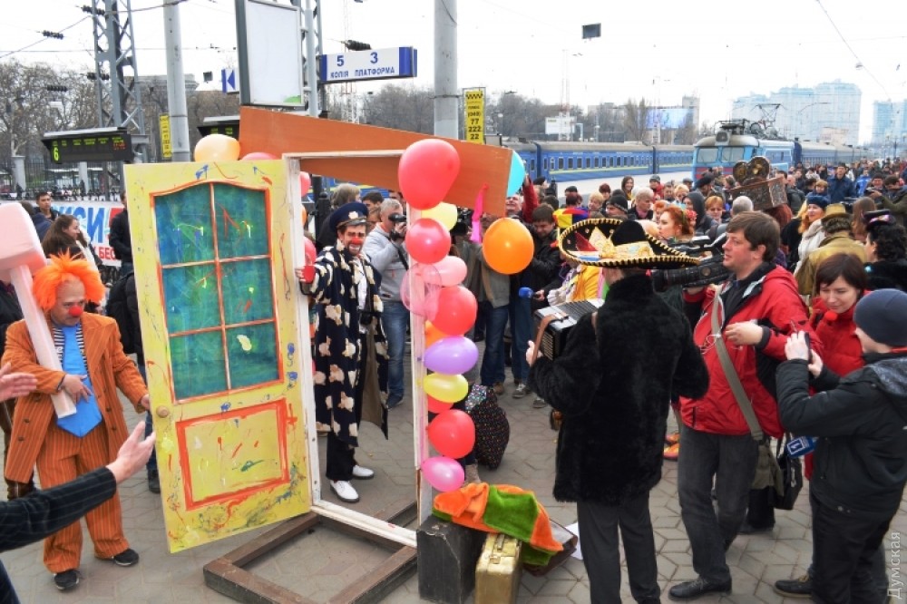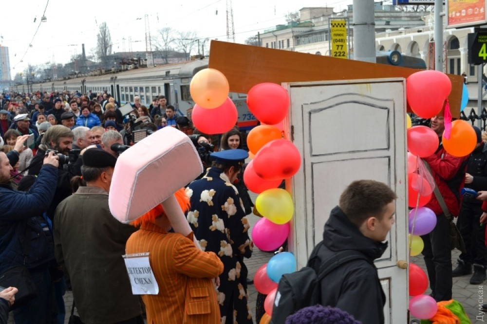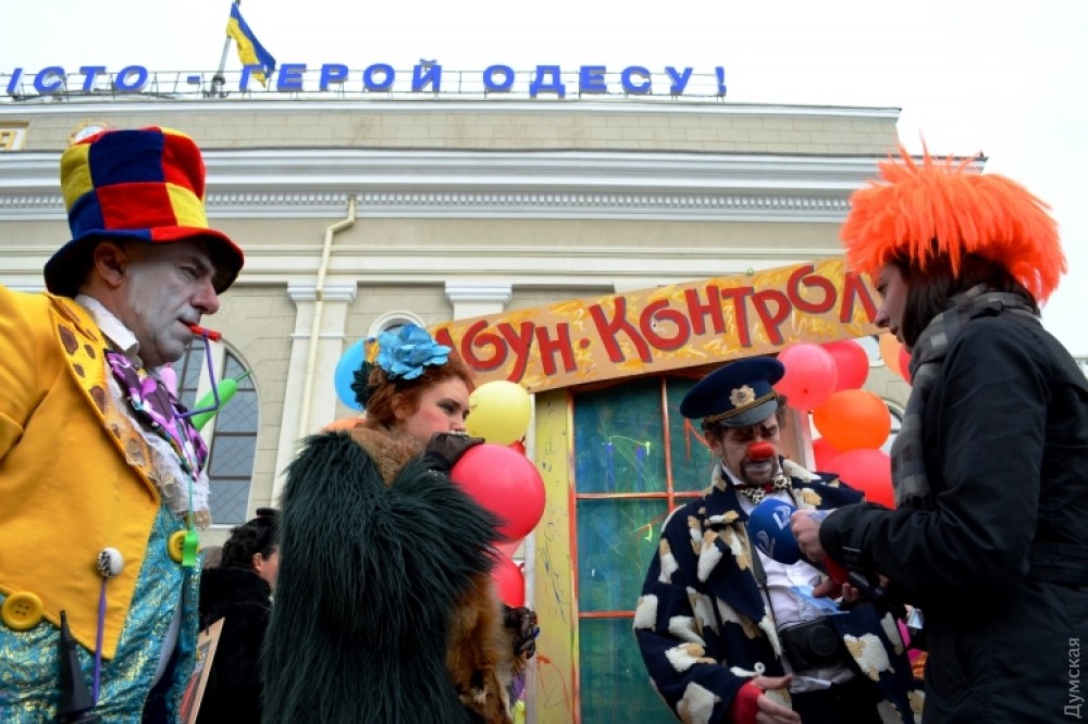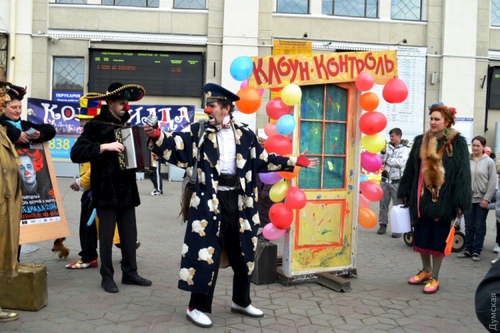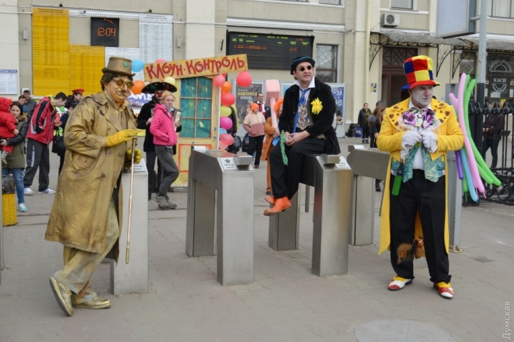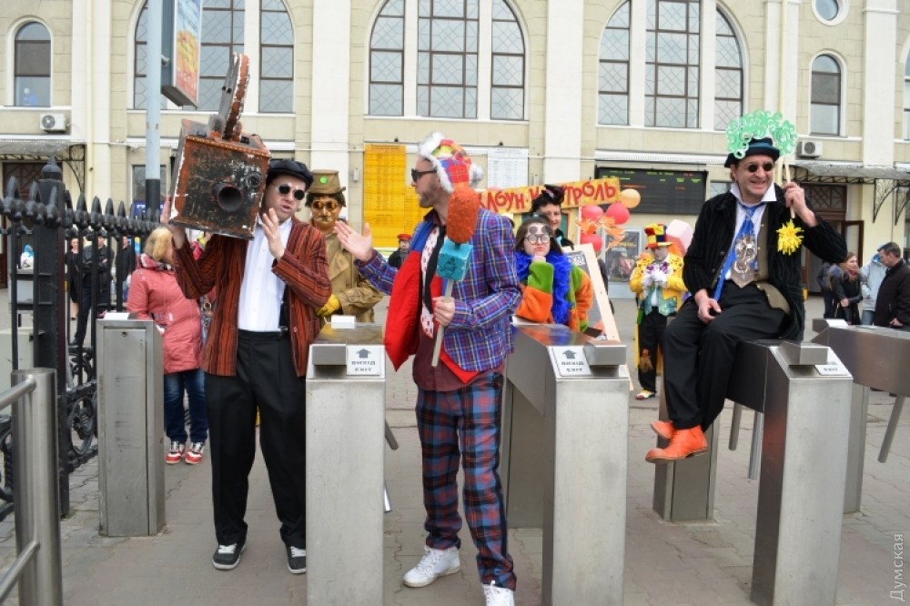 Гостей Одессы на железнодорожном вокзале встречает юмор-контроль. Пассажиры могут пройти в город только через рамку смехоискателя, заполнив смехорегистрационные карточки. Контролируют процесс клоуны-таможенники. «Клоунизацию» вокзала организовала комик-труппа «Маски». Проходит она в честь приближающегося Дня юмора. Подробности — в сюжете «ДумскойТВ» Фото — пресс-службы Одесской железной дороги СМЕРТЬ РОСІЙСЬКИМ ОКУПАНТАМ! Помітили помилку? Виділяйте слова з помилкою та натискайте control-enter Новини по цій темі: 1 квітня 2021: Невеселая Одесса: карантинные ограничения, отмененный парад и "Маски" возле Дюка (фоторепортаж, видео) 31 березня 2021: 1 апреля онлайн: сеть «Обжора» дарит подарки за шутки в соцсетях (новости компаний) 19 квітня 2020: Автор юморинного Морячка 30 лет назад уехал в Израиль, а сейчас рисует карикатуры на тему коронавируса (фото) |
