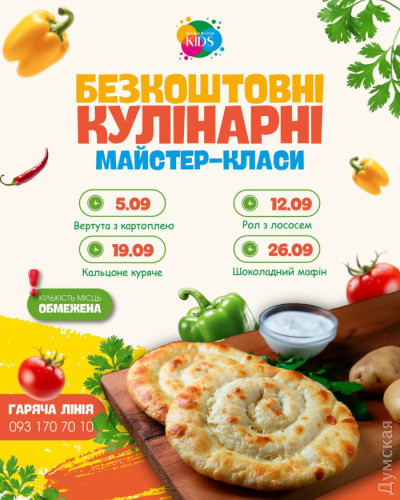 Японія, Італія, домашня кухня та десерт: Gagarinn Kids запрошує на гастроподорож (на правах реклами)Gagarinn Kids запрошує на вересневі безкоштовні кулінарні майстер-класи. Хочете навчитися готувати смачні та корисні страви? Ми відкриваємо секрети кулінарного мистецтва та запрошуємо вас приєднатися! • 5 вересня – Вертута з картоплею: приготуємо традиційну домашню страву. • 12 вересня – Рол з лососем: навчимося робити справжній японський рол. • 19 вересня – Кальцоне з куркою: італійська випічка з соковитою начинкою. • 26 вересня – Шоколадний мафін: ніжні мафіни з ароматом какао та шоколаду. Гаряча лінія: 093 170 70 10 Кількість місць обмежена. Чекаємо на вас за адресою: Одеса, вулиця Гагарінське плато, 5Б ТРК, Gagarinn Plaza, 4-й поверх. СМЕРТЬ РОСІЙСЬКИМ ОКУПАНТАМ! Помітили помилку? Виділяйте слова з помилкою та натискайте control-enter |