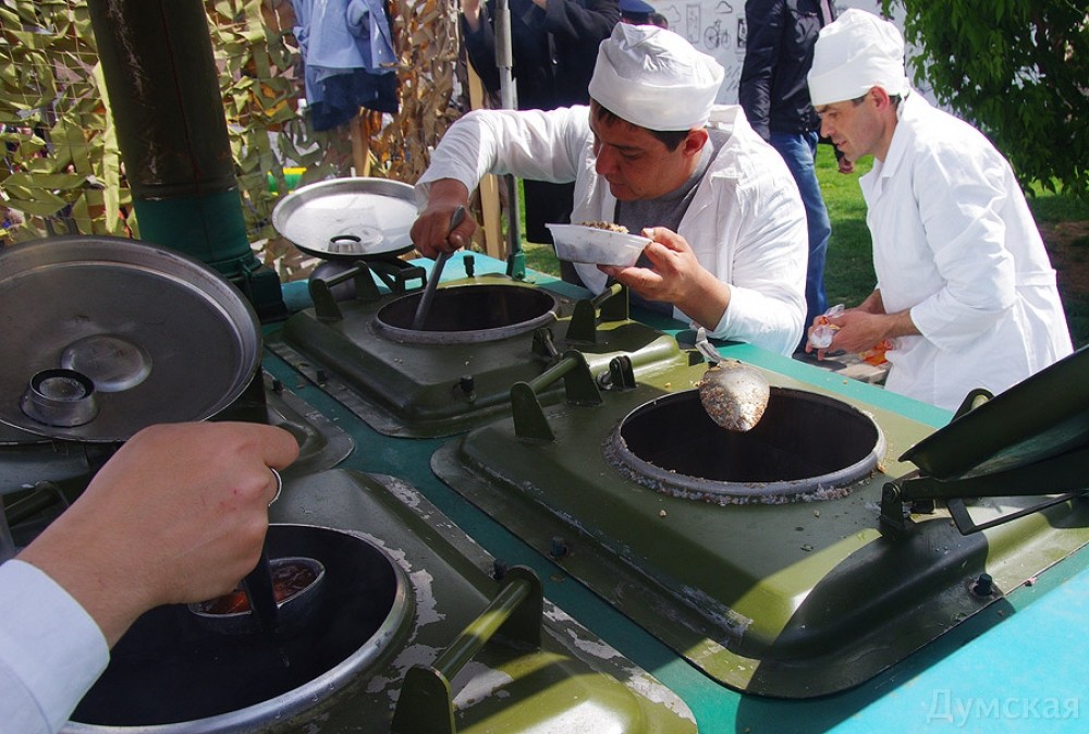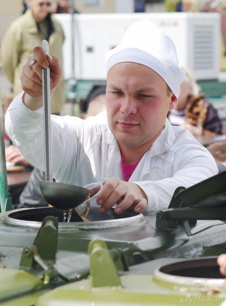 «Победная» ярмарка на Дерибасовской: лабухи от коммерсантов и каша от президентаПразднование дня Победы затронуло и туристический центр города. Так, ярмарка на Дерибасовской заманивала сегодня клиентов концертом патриотической песни. Впрочем, чем сегодняшний день отличался от обычного выходного, догадаться сложно: трио лабухов со сцены развлекали голодных посетителей вполне дежурным репертуаром одесских песен. Другой культурной программы предусмотрено не было. Единственной отрадой для гостей стала полевая кухня, расположившаяся на Греческой площади. Вояки угощали всех желающих гречневой кашей с тушенкой. «Наш расчет готов накормить до пятисот человек, хотя ждем шесть сотен, — рассказывает главный специалист продовольственной службы майор Руслан Савелий. — Такие полевые кухни выставлены по всему городу, согласно приказу президента. Ну а секрет этой каши весьма прост: надо не экономить на тушенке и чтобы настроение было праздничным». Фото Алексея Кравцова СМЕРТЬ РОСІЙСЬКИМ ОКУПАНТАМ! Помітили помилку? Виділяйте слова з помилкою та натискайте control-enter |