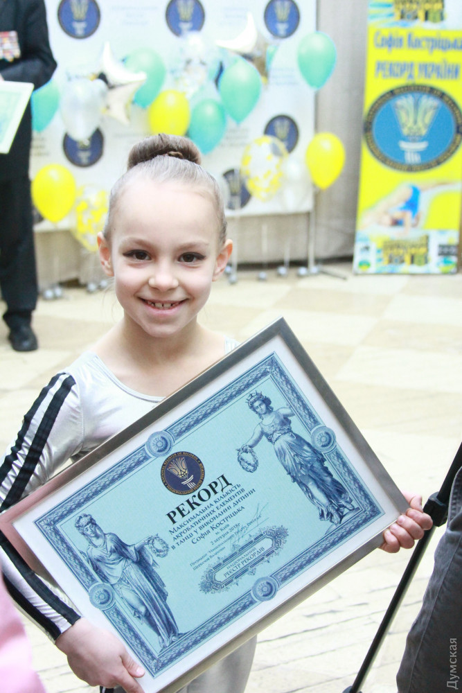 Юная акробатка из Одесской области установила национальный рекорд по количеству трюков в одном танцеСемилетняя жительница Подольска София Кострицкая установила рекорд Украины по максимальному количеству акробатических элементов в одном танце в исполнении ребенка. Рекорд зафиксировали вчера в Киеве, где проходил фестиваль национального реестра рекордов Украины, на котором ставили рекорды разной тематики. В своем выступлении София сделала 111 акробатических трюков и элементов, и ни один из них не повторился. СМЕРТЬ РОСІЙСЬКИМ ОКУПАНТАМ! Помітили помилку? Виділяйте слова з помилкою та натискайте control-enter |