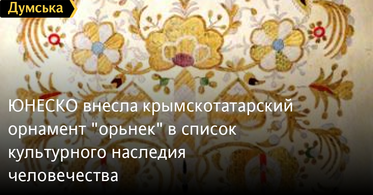ЮНЕСКО внесла крымскотатарский орнамент «орьнек» в список культурного наследия человечестваКрымскотатарский орнамент «орьнек» внесли в Репрезентативный список нематериального культурного наследия ЮНЕСКО. Об этом сообщил президент Украины Владимир Зеленский. «Это достойное признание самобытности кырымлы и красоты культурной мозаики Украины», — написал глава государства в Twitter. В 2018 году Министерство культуры Украины включило крымскотатарский орнамент «орьнек» в Национальный перечень элементов нематериального культурного наследия. Изображение традиционного орнамента принадлежит к древнейшим достижений культуры крымскотатарского народа. Орнамент и его элементы преимущественно используются в вышивке, на одежде, обуви, головных уборах как декор, на различных видах аксессуаров, в ювелирных украшениях, на предметах быта, в отделке мебели, ковровых покрытиях. Орнамент включает в себя объединенные мелкие элементы, преимущественно растительного и геометрического характера, симметричного и асимметричного расположения. Это важный элемент самоидентификации и неотъемлемая часть жизни каждой крымскотатарской семьи. СМЕРТЬ РОССИЙСКИМ ОККУПАНТАМ! Заметили ошибку? Выделяйте слова с ошибкой и нажимайте control-enter |
