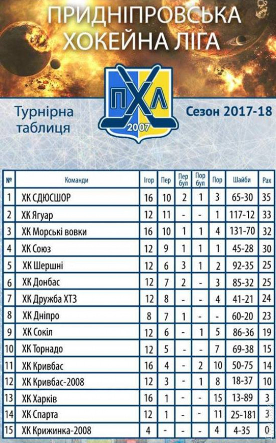 Юные одесские хоккеисты стали победителями домашнего тура Приднепровской хоккейной лигиВ одесском Дворце спорта состоялись матчи 4-го тура Приднепровской хоккейной лиги – детского турнира среди ребят 2007-2008 годов рождения. Как сообщает спортивный корреспондент «Думской», представитель Одессы – команда «Морские волки», показав яркую и результативную игру, в итоге оказался победителем тура. В первый игровой день «волчата» с сухим счетом 6:0 (2:0, 1:0, 3:0) разгромили ХК «Харьков» (по две шайбы забросили Коваленко и Ульянов, по одной – Юревич и Хваль) и уверенно одолели ХК «Кривбасс» – 9:4 (3:0, 4:1, 2:3) (Ульянов оформил покер, дважды отличился Стасюк, по разу – Жеков, Груздев и Гунько). Отметим также, что в этой встрече в составе «Морских волков» дебютировали нападающий Никос Адамидис и вратарь Илья Бобров. Второй игровой день также подарил одесситам хорошее настроение: сначала подопечные Матвея Григорюка в напряженном поединке одолели харьковскую «Дружбу» – 5:3 (2:0, 1:2, 2:1) (трижды отметился Ульянов, по одному разу – Стасюк и Гунько), а затем едва не обыграли ХК «Донбасс». Выиграв первый период (2:1), одесситы с минимальной разницей в счете проиграли второй (2:3), а третий победителя не выявил вовсе (3:3) (в составе «Волков» шесть шайб забросил Ульянов, одну – Гунько). К сожалению, в серии буллитов победу отпраздновали представители «Донбасса».