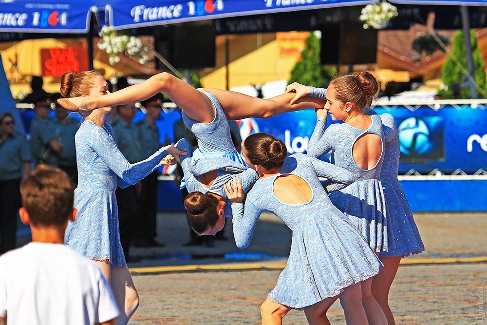Юные спортсменки, бокс и дождь из шланга: на Греческой площади прошел фестиваль молодежи и спортаСегодня, несмотря на недетскую жару, на Греческой площади прошел фестиваль молодежи и спорта. Организаторы подготовили спортивную программу с выступлением боксеров, женских танцевальных коллективов и молодых полицейских, показывающих приемы рукопашного боя. Несколько сотен собравшихся зрителей весьма бурно реагировали на боксерские поединки, а молодые спортсменки изящно тем временем вертелись на шесте. (Проходящие мимо военные музыканты оценили это действо по достоинству). Победителям соревнований по итогам вручили медали и призы. В самом завершении спортивного шоу некий молодой человек вышел на середину площади и стал поливать собравшихся из шланга. Его благородный порыв народ поддержал овациями, и многие искупались в прохладных струях водомета. После такого омовения началась музыкальная программа. СМЕРТЬ РОСІЙСЬКИМ ОКУПАНТАМ! Помітили помилку? Виділяйте слова з помилкою та натискайте control-enter |