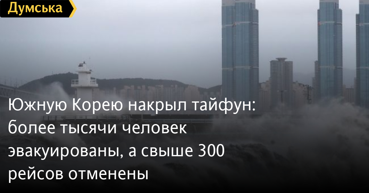 Южную Корею накрыл тайфун: более тысячи человек эвакуированы, а свыше 300 рейсов отмененыТайфун «Хайшен» накрыл южное побережье Южной Кореи, принеся с собой ветер, скорость которого достигает 126 км в час. Об этом сообщают мировые СМИ. Тайфун обрушился на город Ульсан. В результате стихии более тысячи человек были эвакуированы, а более 300 рейсов в 10 аэропортах, включая международный аэропорт Чеджу, были отменены. Из-за непогоды закрыт въезд в национальные парки и некоторые национальные поезда приостановлены. Ранее «Хайшен» бушевал в Японии. Там почти 440 тыс. домов остались без электричества, более 50 человека были ранены, в том числе женщина, которая упала с лестничного пролета в темноте. Еще четыре человека считаются пропавшими без вести. Из-за тайфуна почти два миллионам человек в Японии эвакуировали. СМЕРТЬ РОССИЙСКИМ ОККУПАНТАМ! Заметили ошибку? Выделяйте слова с ошибкой и нажимайте control-enter |