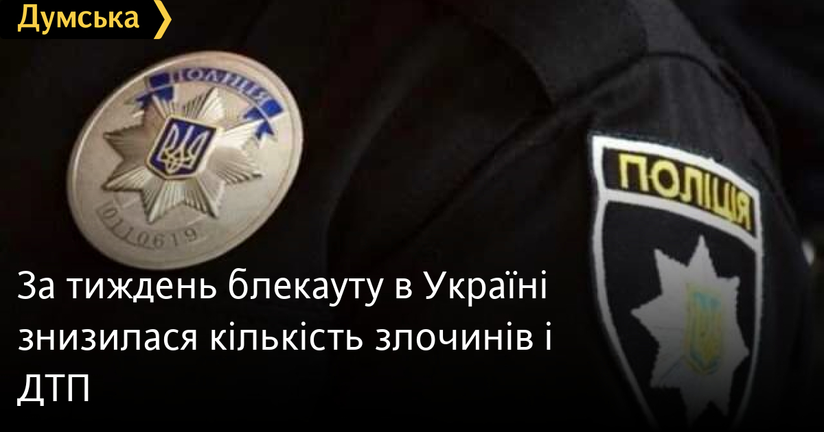 За тиждень блекауту в Україні знизилася кількість злочинів і ДТПКількість злочинів і дорожньо-транспортних пригод в Україні знизилася в період з 23 по 30 листопада. Про це розповів голова Національної поліції Ігор Клименко. За його словами, кількість злочинів, зареєстрованих минулого тижня, зменшилася на 16% порівняно з позаминулим тижнем. Зокрема, на 24% поменшало повідомлень про шахрайства, на 23% менше стало викрадень транспортних засобів, на 7% - крадіжок і на 3% - пограбувань. Крім того, на 13% зменшилася кількість ДТП, на 22% менше трапилося автопригод, у яких травмувалися люди, і на 5% менше трапилося смертей на дорогах. Ігор Клименко підкреслив, що таких результатів вдалося досягти завдяки тому, що з 23 листопада, коли російські ракети нанесли черговий удар по об’єктам критичної інфраструктури країни, поліція збільшила кількість нарядів на вулицях та посилила заходи безпеки на дорогах. Помітили помилку? Виділяйте слова з помилкою та натискайте control-enter |