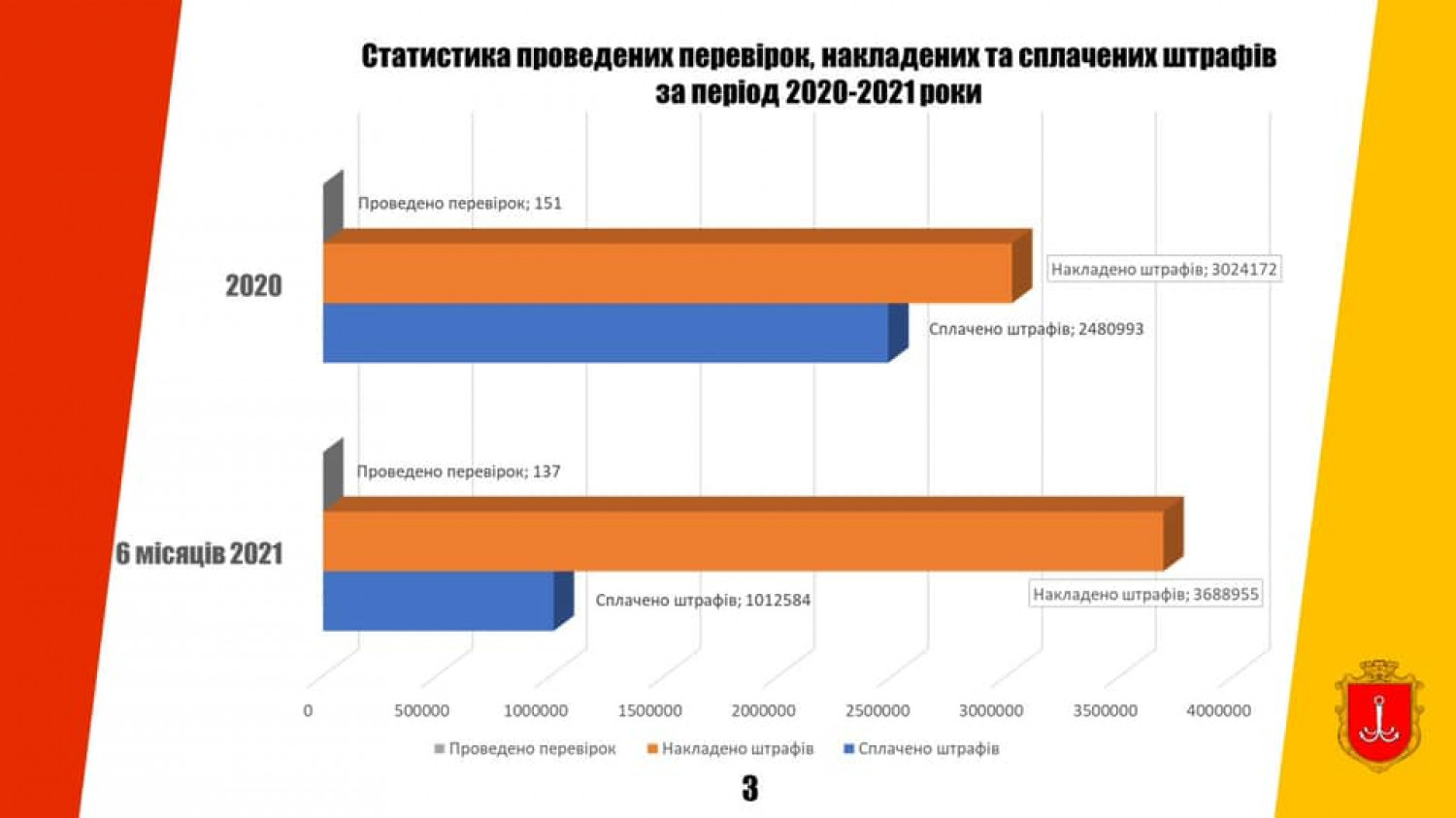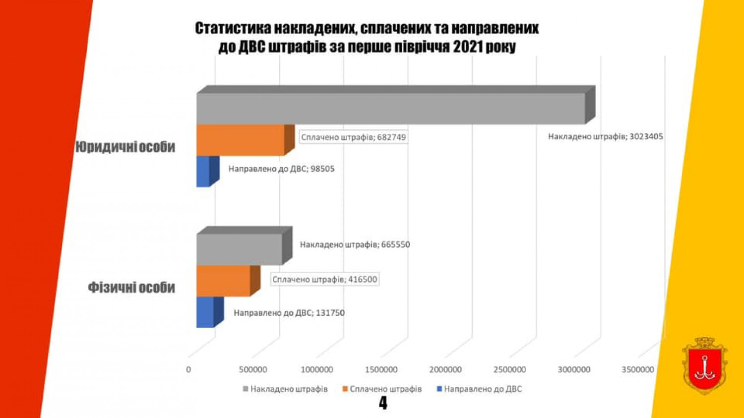 За шесть месяцев нынешнего года одесский ГАСК провел 110 проверок и взыскал более трех миллионов штрафов110 проверок и 3,6 млн грн штрафов — таковы итоги работы управления государственного архитектурно-строительного контроля Одесского горсовета за первое полугодие 2021 года. Как сообщил начальник ведомства Александр Авдеев, общая сумма штрафов за шесть месяцев 2021 года на полмиллиона гривен выше, чем за аналогичный период 2020-го. «Напомню, что целый год мы не проводили проверок из-за моратория на время реформы ГАСИ. Только с апреля этого года мы восстановили их проведение, — отметил Александр Авдеев. — А еще процедура проверок в этом году изменилась. Теперь мы не можем просто выйти на объект по заявлению, а должны провести комиссию с приглашением обеих сторон. Это не менее 10 дней». Основная сумма штрафов за указанный период — 3,2 млн грн из 3,6 - это штрафы, наложенные на юридических лиц. С физических лиц за этот период взыскали всего 665,5 тысяч гривен. Нарушителей чаще всего штрафовали за самовольное строительство, отклонение от проектной документации, использование объектов, не введенных в эксплуатацию и т.д. «Невыплаченные штрафы направляются в исполнительную службу для принудительного взыскания. Таких фактов уже 19. Также отмечу, что часть наших постановлений обжалуются в судебном порядке и отменяются по не зависящим от нас причинам», — отметил чиновник. СМЕРТЬ РОСІЙСЬКИМ ОКУПАНТАМ! Помітили помилку? Виділяйте слова з помилкою та натискайте control-enter