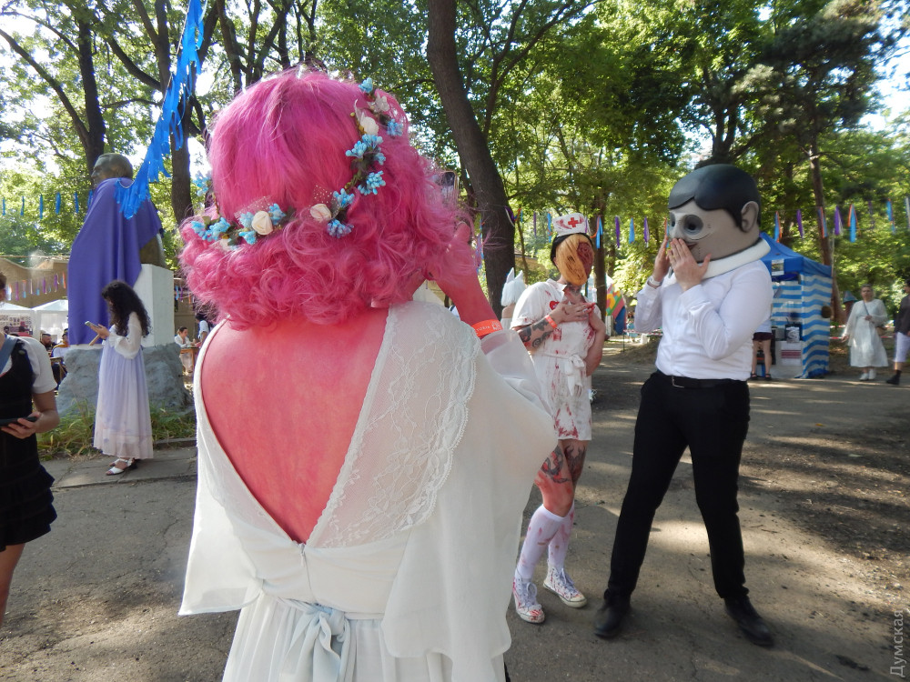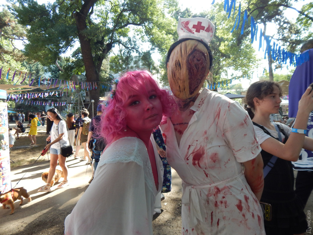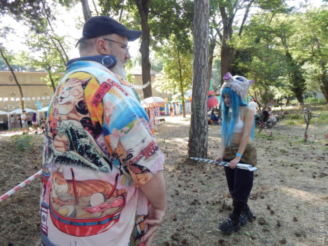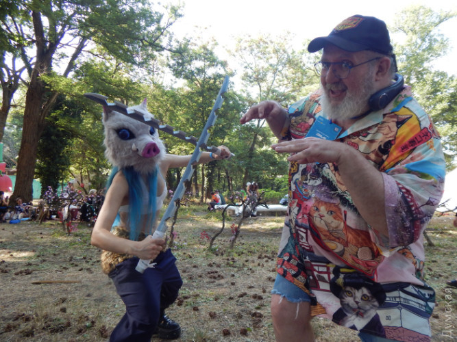 Навіщо під час війни фестиваль диваків? Ґонзо-репортаж про похід старпера на одеський Comic WaveНаш сивочолий спецкор Дмитро Жогов вирушив на фестиваль диваків, тобто гіків. Він завжди прагне потрапити на фестивалі, де тусується молодь непризовного віку. Воно й зрозуміло. Криза, та ще й середнього, поважного віку. Молодиться наш колега. Вбрався він, як завжди, до неможливого яскраво, обвішався модними девайсами й поплентався на подагричних ніжках у саму гущу молодіжного розгулу. Що з цього вийшло — і як він вижив — у гонзо-репортажі. КОТЯЧА СОРОЧКА І ЯК Я ОДРАЗУ ПОТРАПИВ ДО ЛІКАРЯ Сонце палило безжально. Господь Бог з небес навів на Одесу збільшувальне скло й веселився, спостерігаючи, як ми тут корчимося. Я міг би легко посмажити яєчню біля кіностудії на асфальті — і вона навіть могла б пригоріти й обвуглитися. Загалом, я вже досяг того мерзенного віку, коли у трамваях зачиняєш вікна «щоб не продуло», а на сонці падаєш у непритомність від теплового удару. Тому час від часу буду нити. До речі, я прихопив із собою девайс із Китаю: надягаєш на шию — і він починає тебе обдувати. Дуже корисна штука. Цілковито не зважаючи на спеку, скакали по липкому, розталому асфальту на Comic Wave дівчатка-лисички з пухнастими хвостами. Хлопці — в костюмах і з коробками на голові, з мечами, рогами й у японських шкільних сукенках. І всякий інший люд, що викликає подив у пішоходів. Кіностудія змінилася. Весь простір досить нудних павільйонів для зйомок заповнили фантастичні істоти. Щось відбувалося, гукало та репетувало на сцені. Місце вибрано ідеально. Тут є і затінені алеї, і безліч лавочок, і — що особливо тішило — розпилювачі води десь згори. Це було так мило й освіжаюче! У дрібному дощі з мікрокрапель танцювали героїні у фантастичних обладунках. Чорт забирай, як же це красиво! І головне — тут є аура! Чого не було на скляно-металевому морвокзалі. Тут, чорт забирай, залишили свій слід такі світові кінознаменитості, що й уявити важко! Кажуть, навіть Акіра Куросава прогулювався тут, розмірковуючи над монтажем свого «Дерсу Узала». Ну а Comic Wave суміш базару, концерту, битв на мечах, стрільби з лука і бог знає чого ще.
