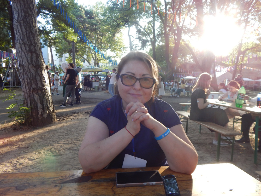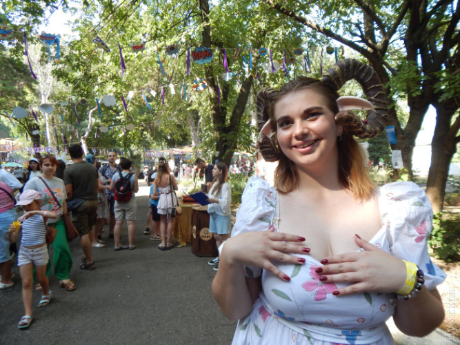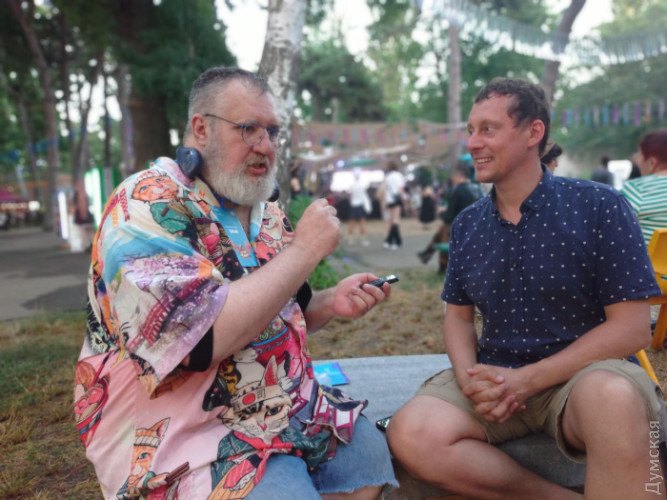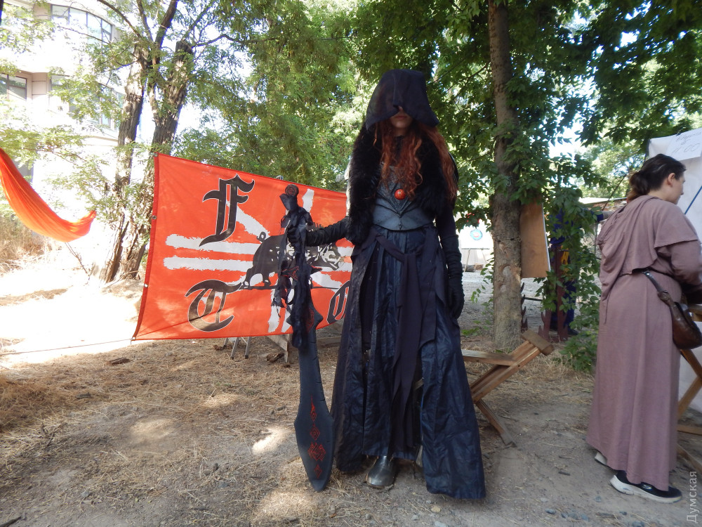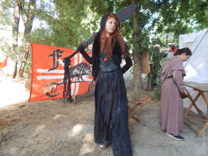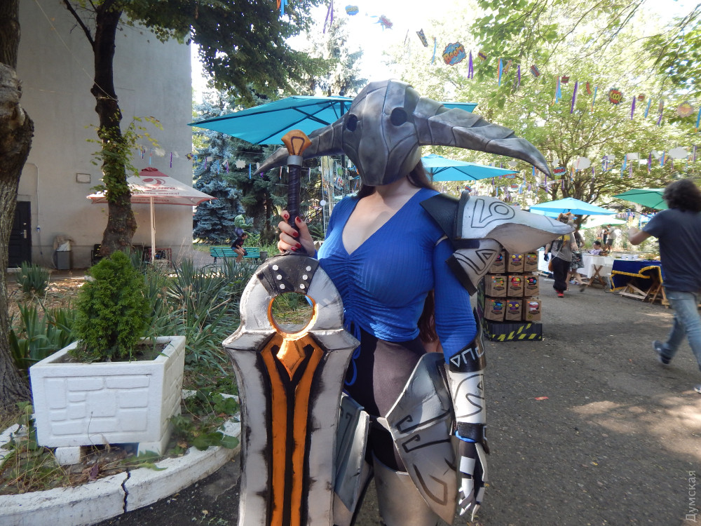 Вона гордо сказала, що в неї такий самий вибуховий характер, як у Іносці. Гордо похвалилася, що на відміну від перших Odessa Expo, де люди ходили переважно в масках, куплених на AliExpress, тут маска кабана і сам костюм — її власного виготовлення. — У мене навіть намагалися його викупити на Comic Con'і у Києві! Я сказала, що робила його з потом та кров'ю — і я його не продам! До речі, переможці конкурсу косплею — двоє, які косплеїли персонажів гри Final Fantasy. Вони здобули чек на 12 тисяч гривень. Я дивився на них. І бачив холодні, мигдалеподібні очі воїна. А от кадика не бачив. Я розмовляв з ними і намагався зрозуміти, якої вони статі. Хотів спитати, але чогось стало незручно. Потім у Карена Чорби, куратора косплея-дефіле, уточнив. Він мені відповів, що це дівчата. — Я сам, сміху заради, — розповідав мені Карен, — наряджаюсь інколи в сукні. Смішно ж — чолов’яга з бородою, товстий і в сукні! І РОХАН З'ЯВИТЬСЯ Ось — розкинутий намет. У його гарячій тиші розкидані речі. Із нього тягне важким середньовічним духом. Самі господарі — в обладунках — рубаються один з одним під палючим сонцем. Иииих. Бумц. Бумц. Мені аж дивитись на них спекотно. Я непритомний можу впасти, якщо уявлю, скільки градусів у них під обладунками. Я завжди дивувався всюдисущості цих мечників. Зайшов у Ботанічний сад — понюхати квіти, злитися з природою. — Бамц! Трямс! Ніби вантажники кидають арматуру на дошки. Ясна річ — рицарі дубасять одне одного. Зайшов у кірху — почути воркування голуба, посилене відлунням у багато разів. Вознести очі до неба! Послухати тихий спів ангелів! — Бац! Трах! Ніби бондар клепає бочку. Рицарі. І що вони тут забули? Ідеш до Порохової вежі — на порт глянути, почути крик чайок… — Бах! Трах! Бубух! Рицарі кидаються одне на одного зі скреготом, наче відкривають старі консерви. І тут те саме: спітнілі мужики гамселять одне одного з неприємним звуком ковадла. Вони мужні й неймовірно витривалі — але кволі. Другий день фестивалю, як-не-як. Під прапором із кабаном (Tангар Клуб) сидять троє рицарів. Вогняно-руда леді в латах: — Я сьогодні з шланга обливалася — боялася, що ноги заіржавіють, — бадьоро каже вона. — А ще в мене є стьобані штани. Вони натуральні. У них тепло. А ще є хутровий комірець. У ньому ще тепліше! - Ми королі Гондора! — вигукує дівчачим голосом другий лицар і хвалиться мечем. — Він важить два кілограми! — Мої «ніжки» важать десь вісім кілограмів, одна! — не втрачає можливості перевершити подругу рудоволоса Шер. - Повітряні тривоги не заважали? — я нарешті вступаю до цього діалогу. — Було страшно. Ми ходили в укриття. Далеченько воно, щоправда. Але дехто й у будівлі (кіностудії) зайшов. У будь-якому разі — не так лячно, як під відкритим небом. МИ ПОВАЛИЛИСЯ БЕЗ СИЛ Фотографеса Валя видихнула, що фотоапарат на такій спеці відмовився працювати. І телефон пише: «Пристрій досяг максимальної температури і далі не може працювати.» — Нам треба охолоути! — Просипіла Валюха. Вона стала червоною, і від неї валили струмки пари. Ми побрели до Павільйону Віри Холодної. Там були кондишені! Студійники кажуть, що легендарний Павільйон №1 будували самі архітектори, які зводили Ейфелеву вежу. Не знаю, чи ті. Але сходи вони збудували зовсім жахливу. Довгу та незручну. І дуже високу. Руки за таке їм відірвати. Знову ж таки розповідають, що колись це був скляний павільйон. І обертався на сонячній ос
