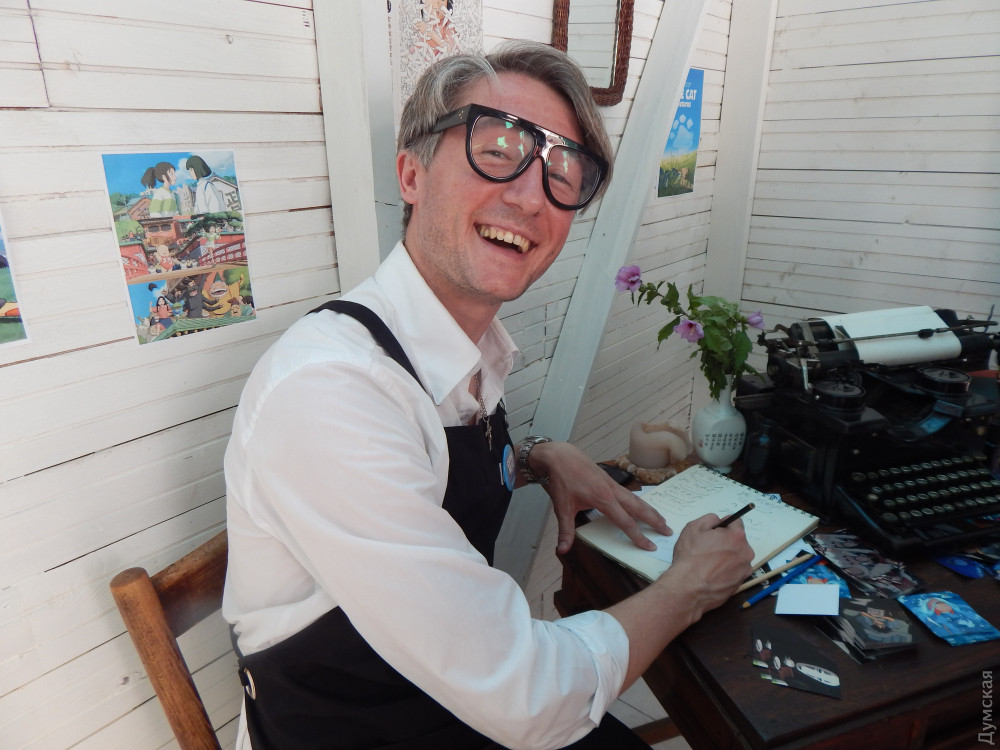 Я робив репортажі з байк-фестивалів, де навіть отримував по пиці. Був на ЛГБТ-ході, коли ультраправі погрожували порвати всіх на шмаття, плювалися й кидалися на людей. Брав інтерв’ю в панків, які в процесі обблювалися й падали під стіл, як кеглі. А тут я опинився в країні рожевих поні та абсолютно мирної публіки. — Ви вже не дуже їх питайте про політику. Це ж люди з іншого виміру, — жалібно попросила мене організаторка. — Бо приходять і питають у Наруто (ніндзя-підліток), чого він не в армії. А він взагалі дівчинка. У нас тут багато чоловічих персонажів насправді дівчатка. Я був найстарішим відвідувачем комік-кона. Старше я побачив лише чудового професійного фотографа Дмитра Скворцова, у якого, мабуть, очі розбігалися від цього надзвичайного дійства. І він пронісся повз, гримаючи об'єктивами і всякою фотографічною дрібницею. Дві дівчинки — одна з білою, інша з чорною шевелюрою — тягнулися одна до одної для поцілунку, повторюючи сцену з якогось аніме Туди, певно, він і побіг. Але він не береться до уваги. А я — найстаріший і найтовстіший. Але в мене була РУБАХА. І не проста, а з котами-самураями, куплена за кордоном. Коти уплітали рис і точили катани. Вона була яскравішою і пістрішою, ніж комікси про Спайдер-Мена. Вона викликала заздрість та захоплення. Вона майоріла як вітрило. Коти грізно махали мечами. Тільки я зайшов на фестиваль — дві опуплені мадами, мама з донькою в костюмах японських чарівниць, відпустили мені компліменти, насипали лайків та усмішок і попросили сфоткатись. Я сфоткався і відчув, як від надлишку чуйсв почастішало серцебиття, підскочив тиск — і пішов я спішно до намету медичної допомоги. Там сиділа мила літня дама, яка виміряла в мене тиск. Я не преминув розпитати її, із чим звертаються учасники фестивалю. - З головним болем. Напекло головушку — і біжать до нас, — лагідно казала вона. — Посидять у тіньочку, води вип'ють — і знову туди. І все у шкурах, латах, у чорному. Ох-хо А вам, з таким тиском, треба було б прийняти таблеточок. І їхати обережно додому. Я почув жалість і тривогу в її голосі. Але, відкинувши співчуття, я вийшов і затрусив у саме серце фестивалю. АНГЕЛ ТА ЧОРТ Тепер розповім про дві істоти на моїх плечах. Ангел і чорт. Оптиміст та песиміст. Песиміст каже: — Ти пам'ятаєш мелодію з фільму «Щелепи»? Ту… дууум… ту… дууум… ту-дум-ту-дум… ТА-ТА-ТАДААААМ! Це коли шукає акула жертву. Вона ж у тебе в голові грає, зізнайся? Ти пам'ятаєш, як у Замок Гаррі Поттера ракета прилетіла? П'ятеро загиблих та 32 поранених! А це було всього за кілька кілометрів звідси! А? Так і із цим заходом! Це все одно як знати, що був напад акули на людей і проводити на сусідньому пляжі дитячий заплив! Але оптиміст, Ангел на іншому плечі, відрізає: - Організатори, чай, не пальцем роблені. На кожному дереві вказівник, де бомбосховище. Сховатись на студії від уламків — нікчемна справа. Скільки літає ракета? Три хвилини? Навіть ти, 150-кілограмовий товстун, дошкандибаєш до якоїсь будівлі. Тож не нуди. — Але ж така кількість людей. В одному місці… — Ти на базар ходив учора за картоплею? А тривога, між іншим, вила! В аптеці у черзі стояв? Стояв. То що, по-твоєму, треба замкнутися вдома, щоб тобі їжу під двері підкладали? Іди з очей моїх. А то як трісну! І чорт-песиміст ретирувався. БУДИНОК МІЯДЗАКИ Будиночок Хаяо Міядзакі встановлено біля входу на кіностудію. І туди одра