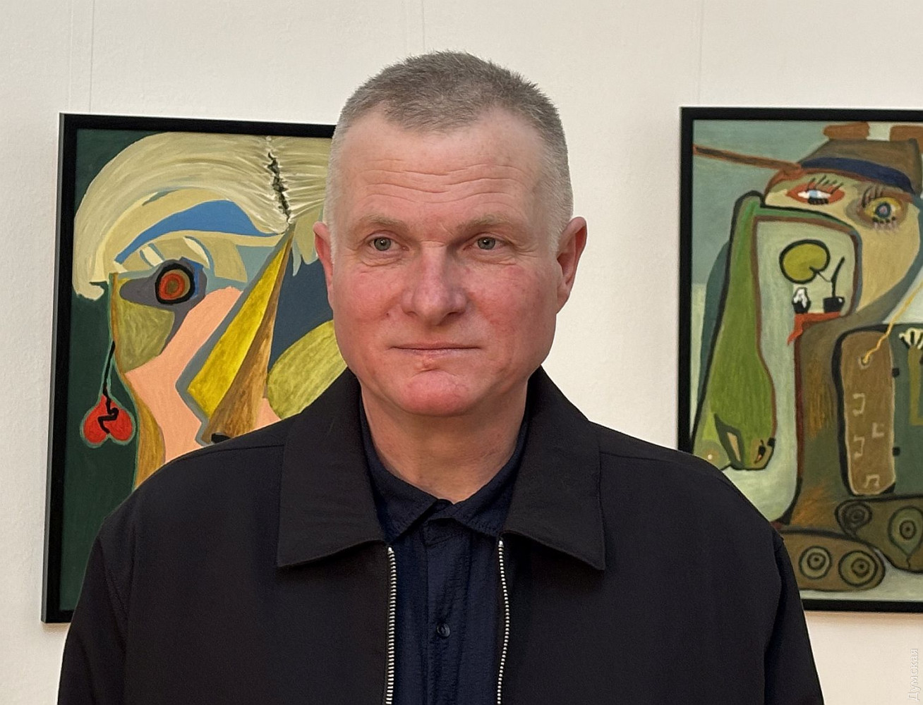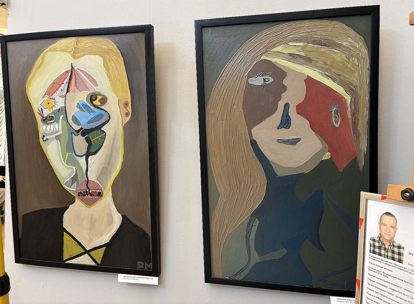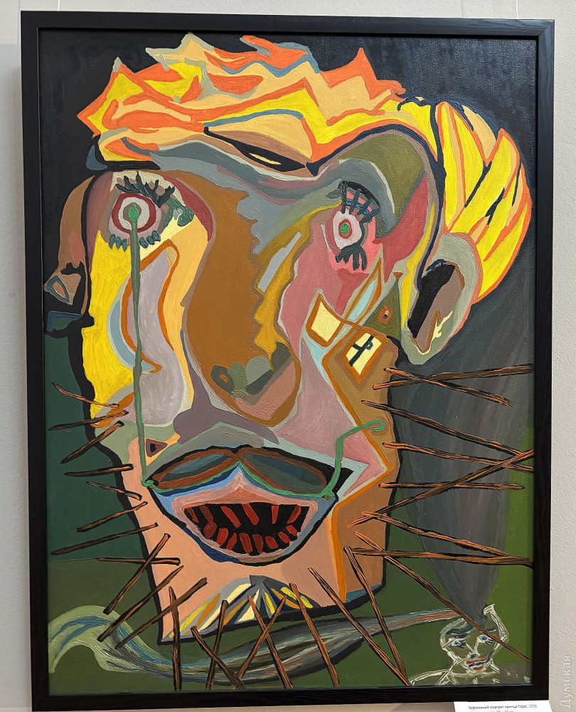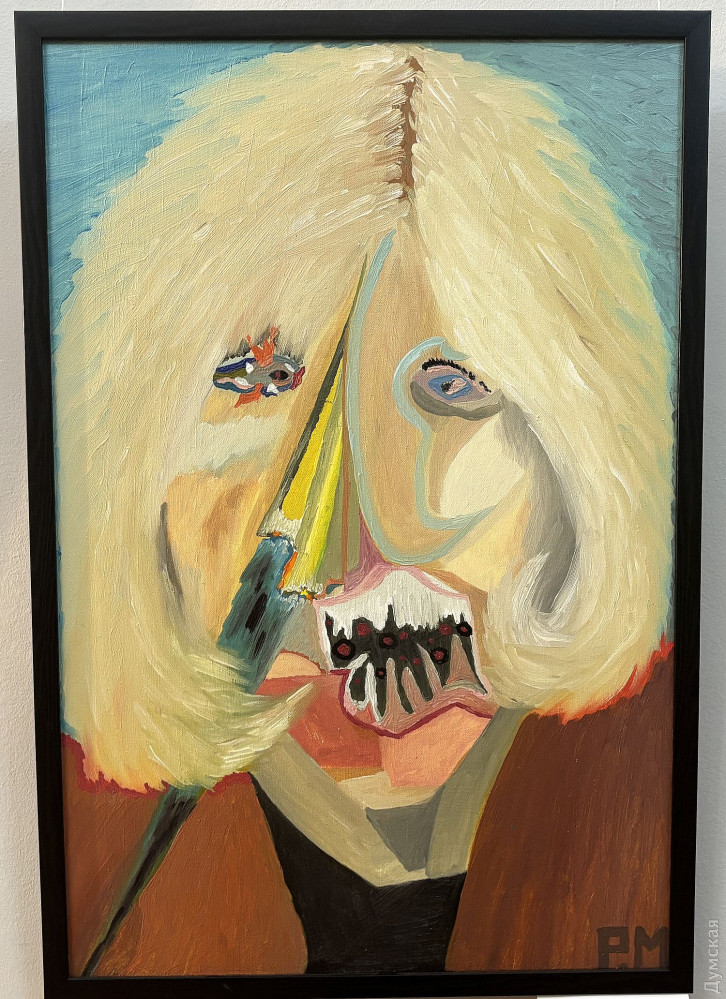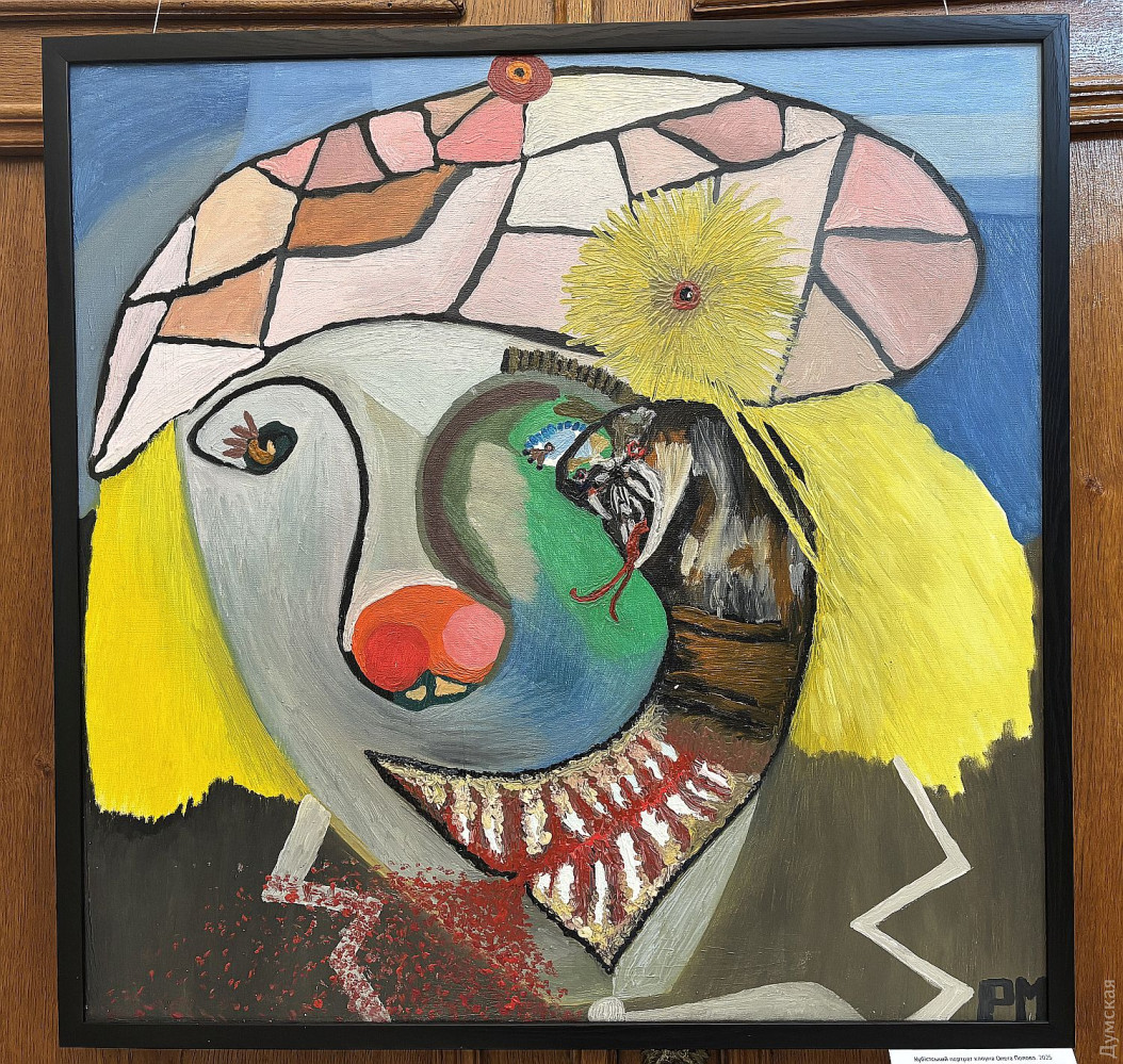 Выставка «Кубистские лица знаменитостей в духе Пикассо» до 17 апреля работает в галерее Одесского литературного музея (Ланжероновская, 2). Живописец Михаил Романюк превращает портрет в поле абстрактной игры с коллективной памятью. «Знаменитости, которых мы «знаем», тут перестают быть узнаваемыми. Их лица — это не поверхность, а энергетический разлом: геометрические плоскости, резкие линии, пульсирующие цветовые акценты. 22 живописных полотна разбирают образ на фрагменты и собирают его заново — уже без иллюзии реализма. Это не портреты в классическом смысле, а абстрактные конструкции славы, власти, трагедии и красоты», — пишется в аннотации к выставке. Насмотревшись трукрайма, можно заподозрить внешне добродушного и приветливого Михаила в преступных наклонностях. Эти портреты отлично смотрелись бы как реквизит и движущая сила сюжета напряженного триллера. Порой автор словно снимает с части лица модели слой мягких тканей, и тут выясняется, например, что состояние зубов Брижит Макрон оставляет желать лучшего, как, впрочем, и у Дональда Трампа, который к тому же выглядит недовольным жизнью, печальным клоуном в красном колпаке. «Серия «Кубистские лица знаменитостей в духе Пикассо» — художественное исследование современного пантеона, — снова читаем аннотацию. — Живые и умершие, но до сих пор актуальные фигуры становятся носителями коллективного сознания. Автор трансформирует реальность в плоскости цвета, иронии и психологического напряжения, ведя диалог с Пикассо не как копиист, а как собеседник. Фрагментарность формы здесь — не стилистический прием, а способ сказать больше: о том, как образ «ломается», чтобы проявить свое настоящее напряжение». Валерия Залужного художник делает неким киборгом на гусеничном ходу, а Сандру Буллок наделяет длинными и острыми коготками. С волос Джулии Робертс автор безжалостно смывает рыжий цвет и оставляет седину. А вот Ангела Меркель ему явно симпатичнее многих, иначе бы он не дополнил ее аутфит игривыми сережками в форме сердечек. Михаил Романюк родился в Одесской области и работает на пересечении неокубизма, экспрессионизма и авторского портретного гротеска. Его серии портретов — это всегда исследование, как формируется образ в коллективном восприятии. Работы художника представлены в свыше 100 международных онлайн-галереях и неоднократно экспонировались в Одессе. Но все это были групповые проекты, а сейчас проходит его первая «персоналка» масляной живописи. «Лицо никогда не было только поверхностью. Оно было абстракцией, которую мы сами создаем и распознаем. Искусство становится зеркалом коллективной памяти. Серия «Кубистские портреты знаменитостей» завершена. Навсегда. Я не возвращаюсь к этой серии. Не повторю. Не продолжаю. Не дублирую. Каждый портрет — это не о схожести. Это о напряжении личности, разложенной на плоскости, ритмы, тишину и конфликт. Дальше — другой этап. Другая глубина. Другой разговор. Эти работы остаются как зафиксированный период моего пути», — говорит художник. Очень жаль, нам уже понравилось! Кинозвезды, писатели, художники, политики предстают в неожиданном свете. Алла Пугачева, например, напоминает Бабу-Ягу, и рядом маленькая ступа с двумя каргами поменьше, есть над чем подумать. Вспоминается строка из популярной некогда песенки: «Портретик твой работы П
