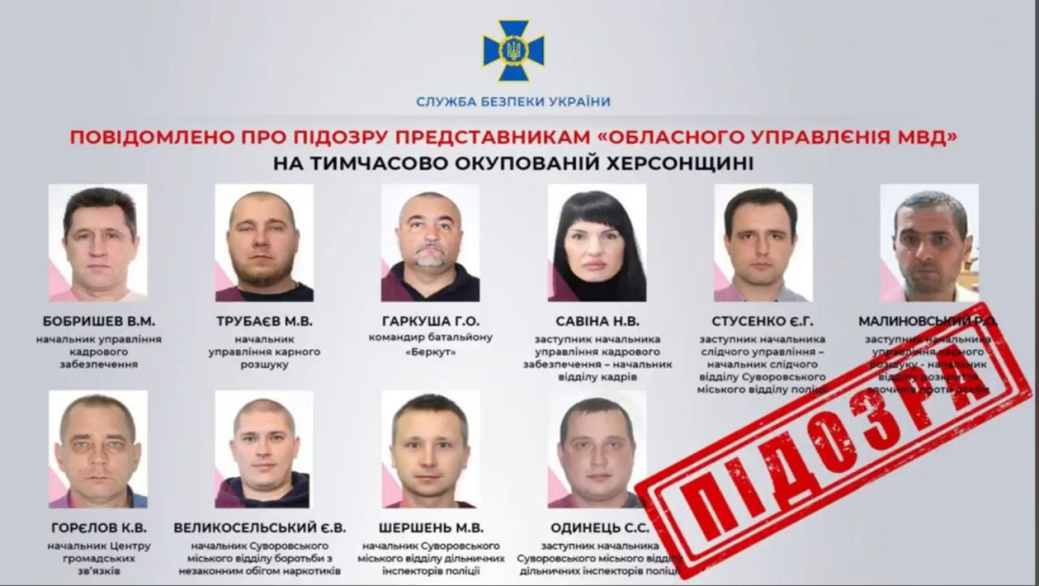 СБУ викрила всіх зрадників, які вступили до ворожої «поліції» на ХерсонщиніСлужба безпеки України ідентифікувала всіх зрадників, які вступили до так званого «мвд рф» на Херсонщині. Як зазначили в пресслужбі СБУ, вже повідомлено про підозру 26 представникам ворожої спецслужби. 14 із них є колишніми працівниками Нацполіції. Створене окупантами «головне управління мвс Херсонської області» виконує завдання з придушення опору та залякування мешканців тимчасово окупованих районів. Це відбувається шляхом масових репресій, переслідувань і незаконних затримань громадян. Для цього, зокрема, окупанти відновили діяльність регіонального підрозділу міліції «Беркут». «До потерпілих застосовують психологічний тиск, насильство та погрози вбивством. Зафіксовано факти викрадення і катування людей», — йдеться у повідомленні. Співробітники СБУ зібрали всі дані на кожного зрадника, задокументували злочинну діяльність, встановили місця їх перебування та маршрути переміщення.