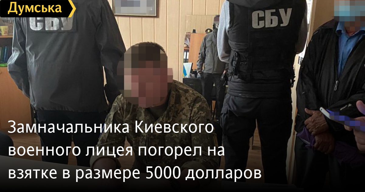 Замначальника Киевского военного лицея погорел на взятке в размере 5000 долларовСлужба безопасности Украины задержала заместителя начальника Киевского военного лицея имени Ивана Богуна, причастного к получению взятки за поступление в учебное заведение. Об этом сообщает пресс-центр СБУ. По предварительным данным следствия, чиновник требовал 5000 долларов от жительницы столицы — за указанную сумму фигурант гарантировал зачисление ее родственника на обучение в лицей. Правоохранители задержали злоумышленника в соответствии со ст. 208 Уголовно-процессуального кодекса Украины в его служебном кабинете во время получения части взятки в размере 2500 долларов США. Сейчас задержанный помещен на гауптвахту Центрального управления Военной службы правопорядка (по городу Киеву и Киевской области). Решается вопрос об уведомление о подозрении. СМЕРТЬ РОССИЙСКИМ ОККУПАНТАМ! Заметили ошибку? Выделяйте слова с ошибкой и нажимайте control-enter |