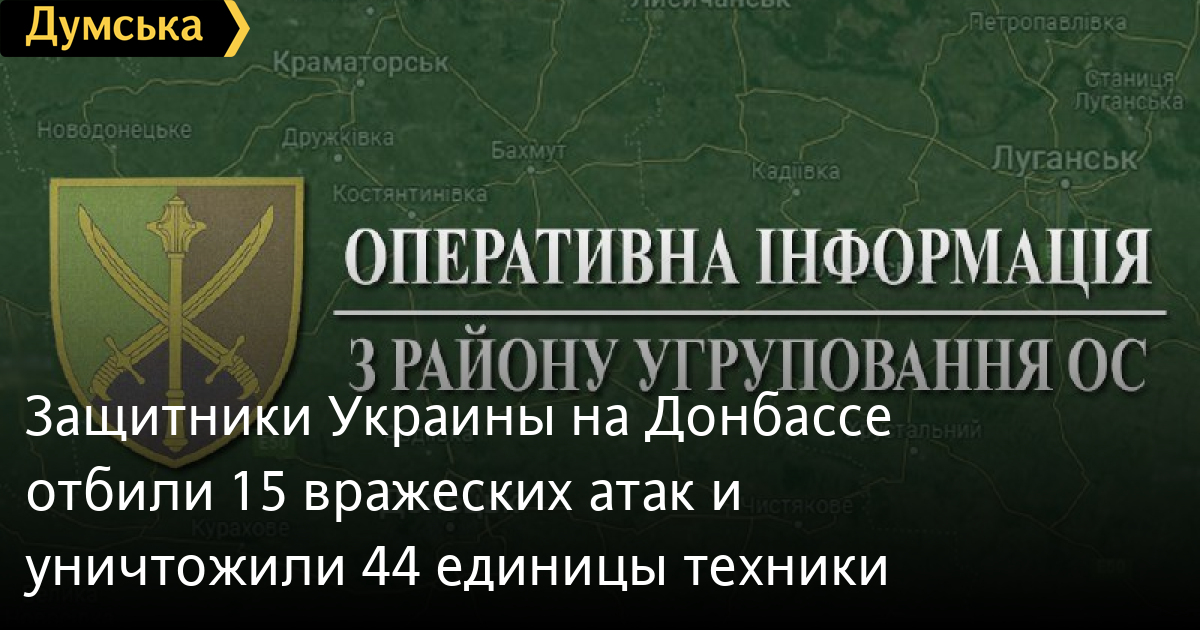 Защитники Украины на Донбассе отбили 15 вражеских атак и уничтожили 44 единицы техники15 вражеских атак отбили защитники Украины на Донбассе за сутки 9 мая. Об этом сообщает командование Операции Объединенных сил. Уничтожены один зенитный ракетный комплекс, девять танков, три артиллерийские системы, 25 единиц боевой бронированной техники, три единицы специальной инженерной техники и три автомобиля врага. Подразделения противовоздушной обороны в небе над Донбассом сбили один беспилотный летательный аппарат типа Орлан-10». СМЕРТЬ РОСІЙСЬКИМ ОКУПАНТАМ! Помітили помилку? Виділяйте слова з помилкою та натискайте control-enter |