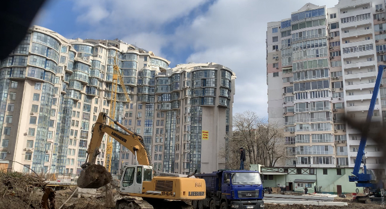Строительство жилого дома на Лидерсовском бульваре, возле парка Шевченко, продолжается, несмотря на арест этих земельных участков.