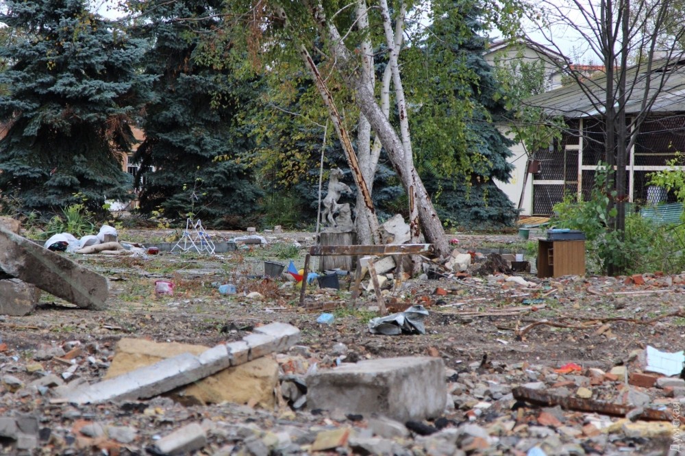 Распиленные части крана убрали обратно на территорию, однако рухнувший забор позволяет без труда зафиксировать, что осталось от лагеря.