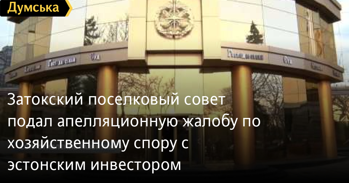 Затокский поселковый совет подал апелляционную жалобу по хозяйственному спору с эстонским инвесторомЗатокский поселковый совет продолжает препятствовать развитию курорта. После того, как юристы поссовета проиграли суд первой инстанции, который обязал их заключить договор на строительство Набережной с эстонским инвестором, они подали апелляционную жалобу. Уже по традиции, поселковый совет максимально пытается затянуть процесс, подав апелляцию в последний день СМЕРТЬ РОССИЙСКИМ ОККУПАНТАМ! Заметили ошибку? Выделяйте слова с ошибкой и нажимайте control-enter Думская ТВ. Сюжеты: