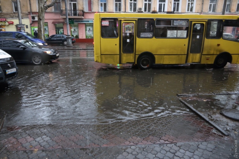Затяжной дождь в Одессе: улицы понемногу заливает, но проехать можно