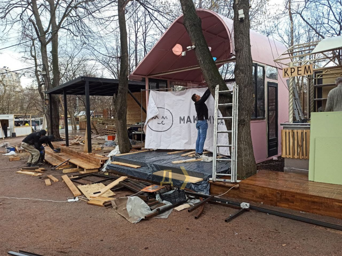 Открытие сезона: в Зеленом театре появился музей скульптур, благотворительный магазин и киноклубУже завтра, 17 апреля, Зеленый театр распахнет свои двери для посетителей, но во время локдауна будет работать исключительно как парковое пространство. Корреспондент «Думской» погулял по театру в преддверии открытия, попал под дождь прямо в музее «Другая природа» и успел обсохнуть в благотворительном магазине Umberto Eco-Shop. До открытия остается меньше суток, но до полной готовности Зеленому пока далеко. В зоне фуд-корта сейчас активно пилят, сверлят и обустраивают торговые точки, волонтеры очищают территорию от мусора, а художники докрашивают объекты. Впрочем, уже завтра, обещают ребята из команды театра, Зеленый будет полностью готов к приему гостей. Из самых новинок этого сезона – открытие музея современного искусства под открытым небом «Другая природа». Это проект, на котором представлены 13 скульптур, инсталляций, мозаик и граффити одиннадцати авторов из Одессы, Львова, Днепра, Харькова и Ивано-Франковска. По словам куратора проекта Марии Целоевой, это выставка — подарок к 85-летнему юбилею театра, который Зеленый справляет в этом году. «Это проект о взаимоотношениях между человеком, культурой и историческим наследием. Это направление будет развиваться и в экспозиции будут появляться новые арт-объекты. Одна из центральных работ в музее — колосс из бронзы скульптора Егора Зигуры, который символизирует воинов АТО, которые вернулись с войны», — рассказывает Мария. Среди новых локаций – благотворительный магазин Umberto Eco-Shop. Открытие лавки реализовали совместно с проектом «Вещи, которые помогают». Здесь будут продавать сувенирную продукцию театра, а также товары от украинских дизайнеров и творческих мастеров со всей Украины. 17 апреля в Зеленом откроется выставка украинских иллюстраторов под названием «Все тут». Экспозиция посвящена всему, что касается театров. Также посетители увидят выставку Алевтины Кахидзе о взаимодействии растений и насекомых. Пока что художница разработала восемь сценариев, по которым будут развиваться события на грядках, а реализовывать их будут уже в мае - когда потеплеет. Новый формат ждет киносекцию Зеленого – здесь появится дискуссионный «Твин Пикс Клуб». Дважды в месяц желающие смогут пообщаться со специалистами из сферы кино. Кроме того, театр начнет сотрудничать с кинофестивалем «Молодость», а в июле покажет ретроспективу Дэвида Линча. Автор — Надежда Маркевич СМЕРТЬ РОСІЙСЬКИМ ОКУПАНТАМ! Помітили помилку? Виділяйте слова з помилкою та натискайте control-enter |
