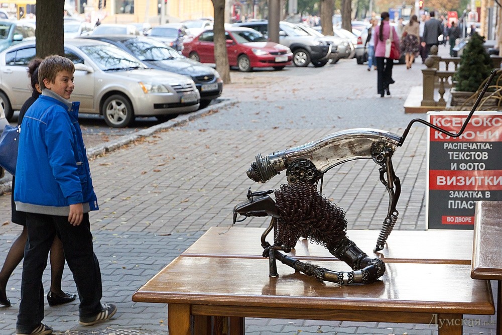 Одесский автор скульптур из металлолома обещает создать новый шедевр на глазах у посетителей своей выставкиВыставка авторских работ одесского скульптора Кирилла Максименко, автора памятника «Рука Стива Джобса», откроется завтра в помещении паба на улице Жуковского, 23. Как рассказал «Думской» сам автор, в экспозиции будут представлены практически все его малогабаритные работы — как уже известные одесситам, так и совершенно новые. Их будет три десятка. Кроме того скульптор-сварщик, обещает в конце вечера создать новую работу прямо на глазах у гостей мероприятия. СМЕРТЬ РОСІЙСЬКИМ ОКУПАНТАМ! Помітили помилку? Виділяйте слова з помилкою та натискайте control-enter |